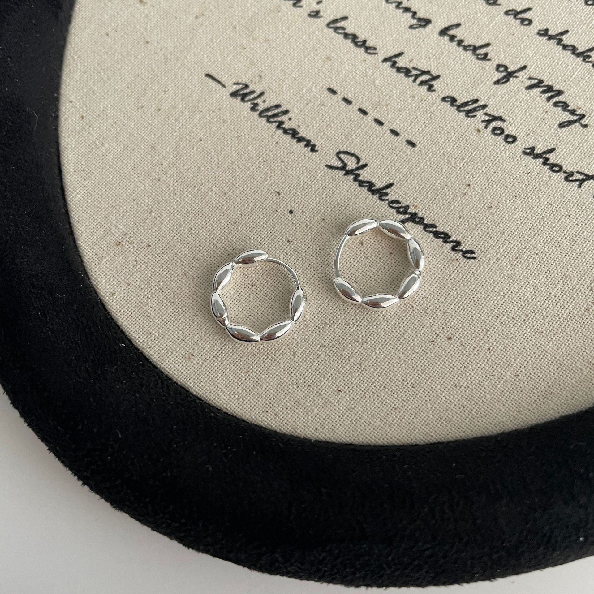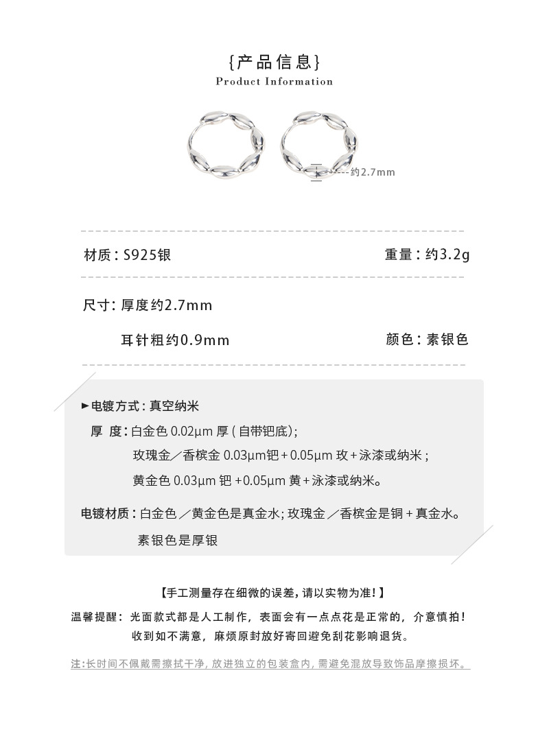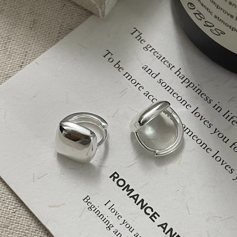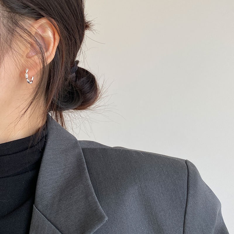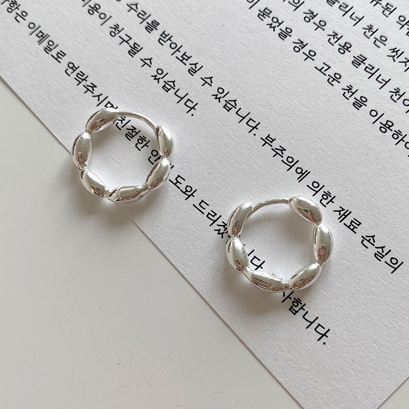S925纯银韩版小众设计感不规则肌理感耳扣复古百搭旦形耳饰品批发