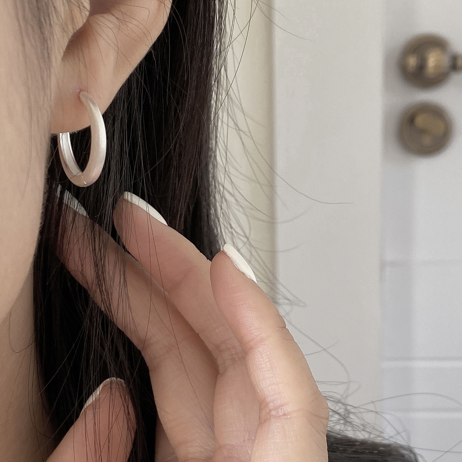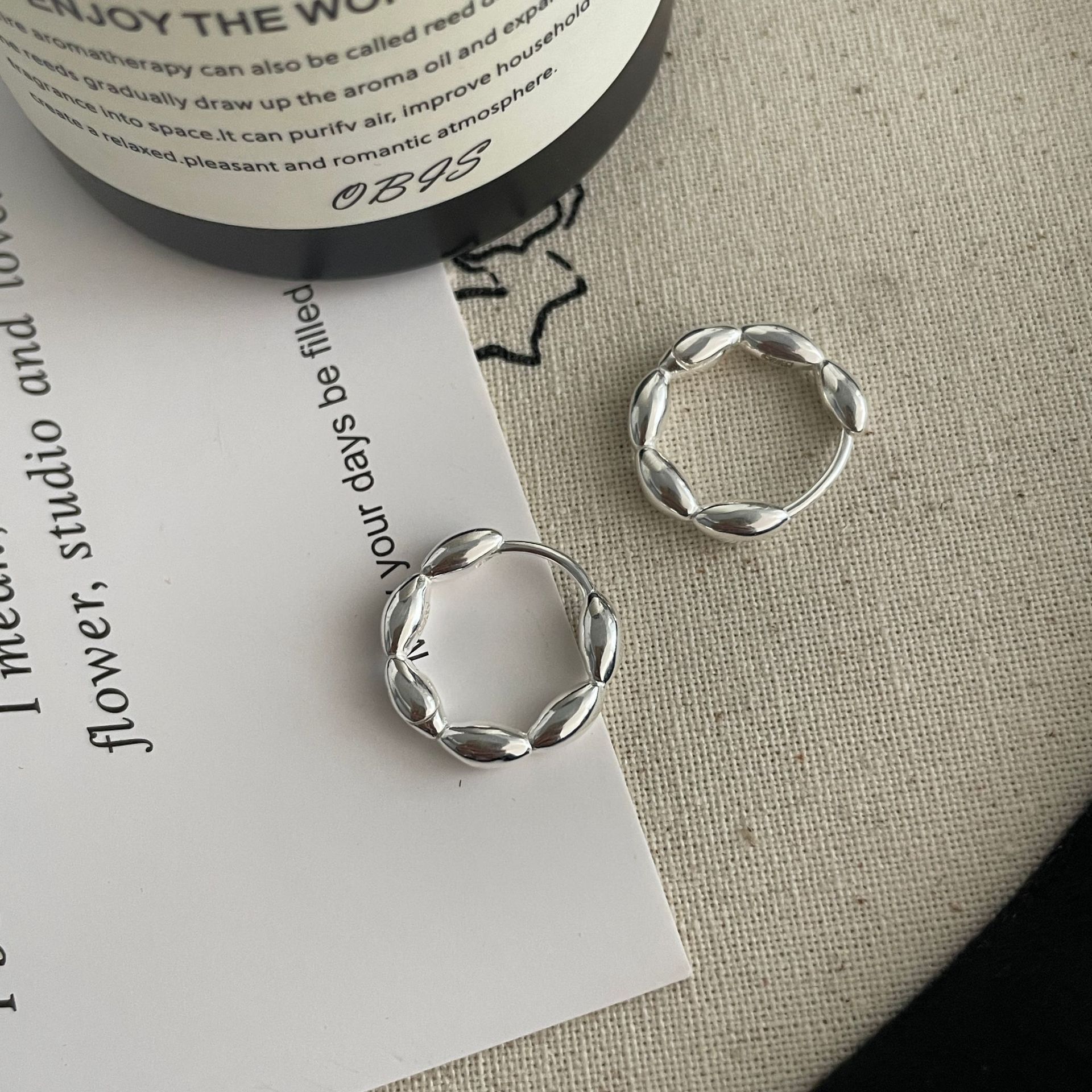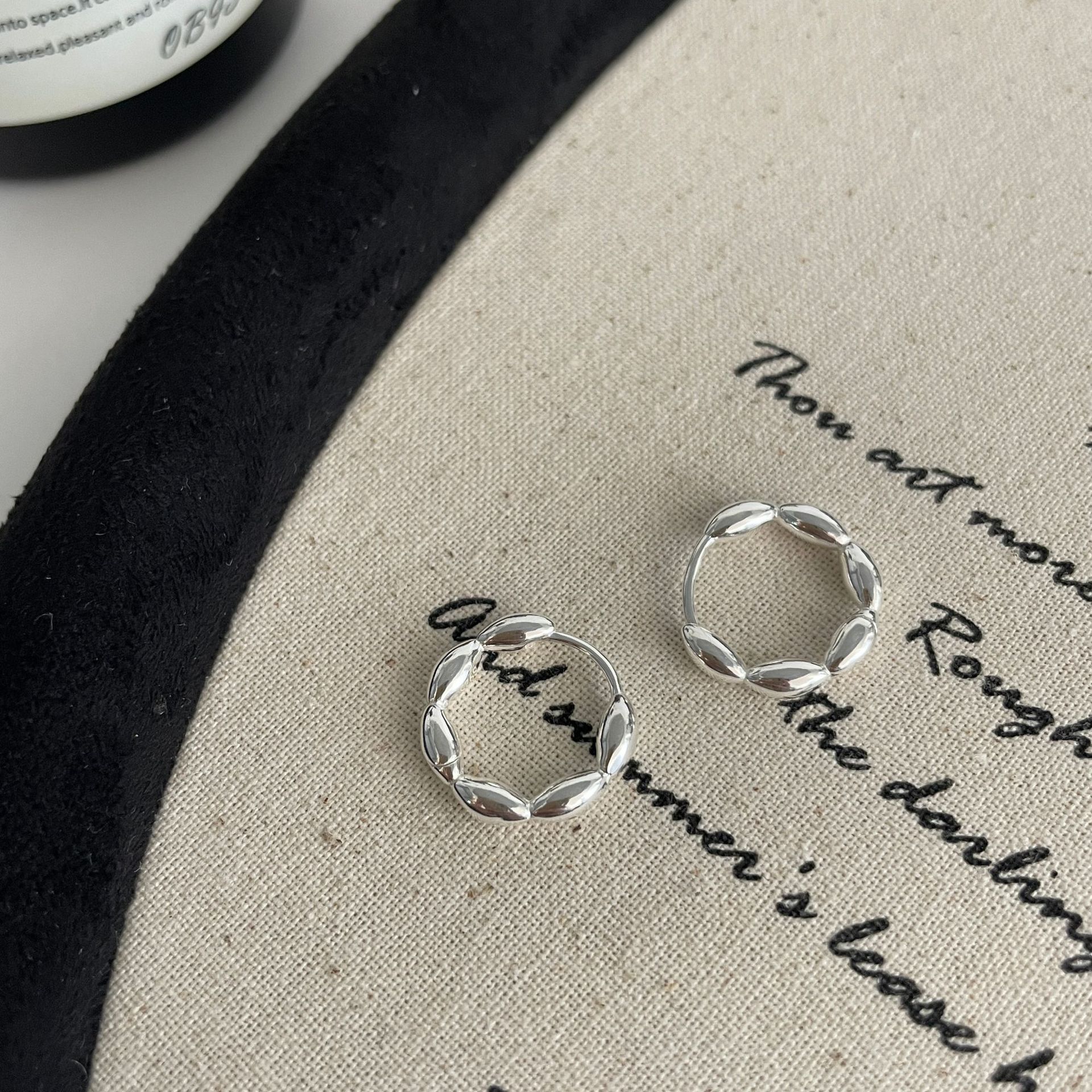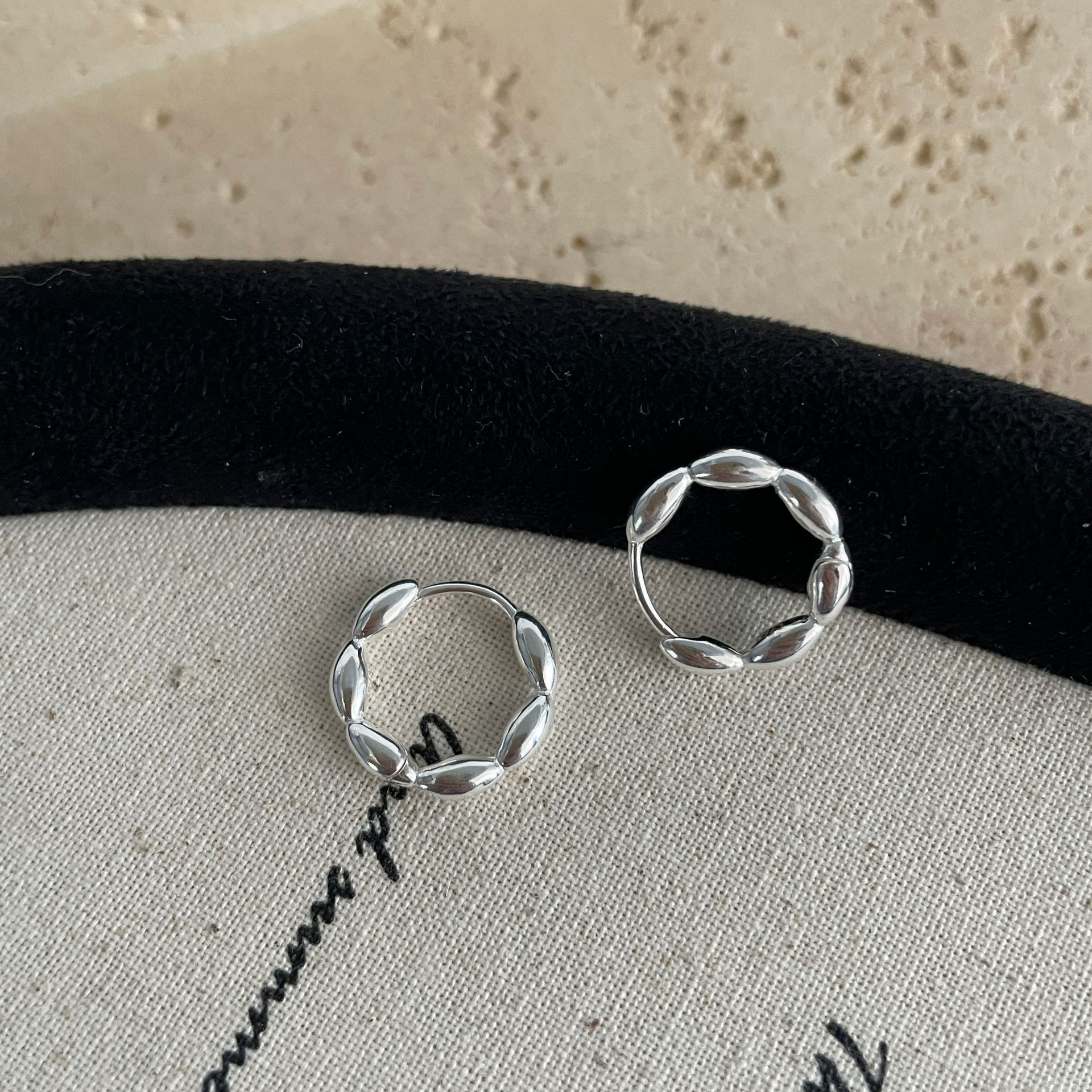 S925纯银韩版小众设计感不规则肌理感耳扣复古百搭旦形耳饰品批发