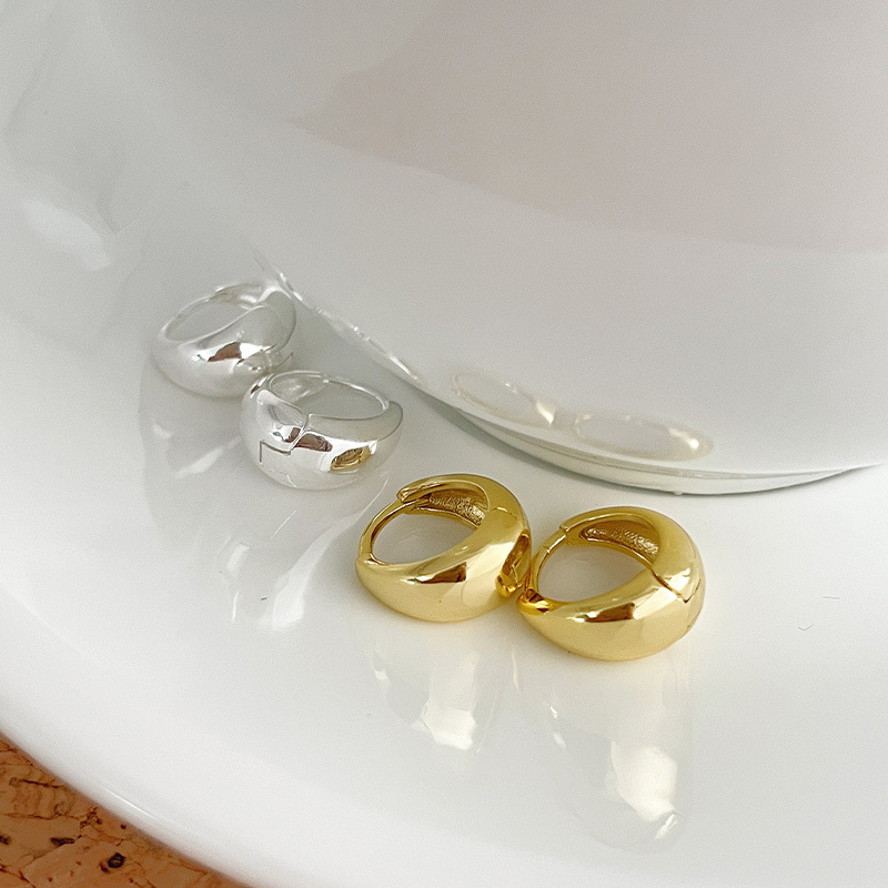 サイナ韓国S925純銀弧面楕円小金豆耳ボタンINSシンプルでおしゃれな水滴形耳飾り