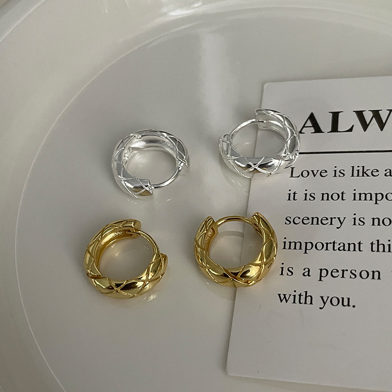 サイナS925純銀韓国版小衆菱格紋クロス耳輪シンプルな個性ファッションセンス耳飾品卸売り