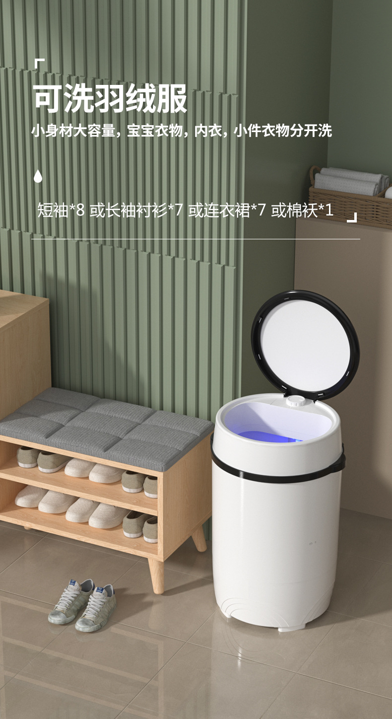 新款7.5KG小型洗衣机家用迷你宿舍租房用婴儿童内衣裤袜洗脱一体