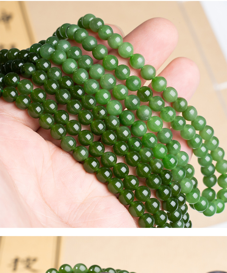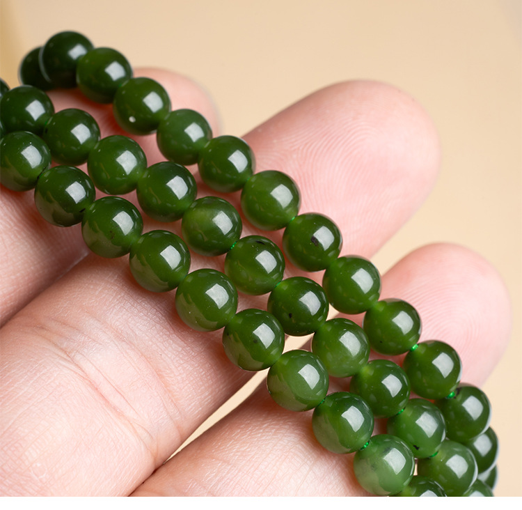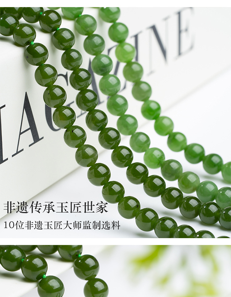 天然碧玉手串手女菠菜绿和田玉手串官方正散珠串珠子玉石手镯