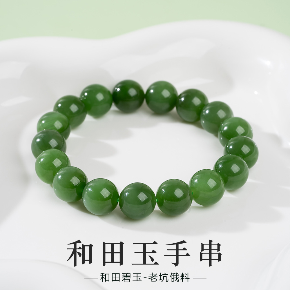 天然新疆和田玉碧玉手串高货碧玉12mm圆珠手链男女款礼物现货批发