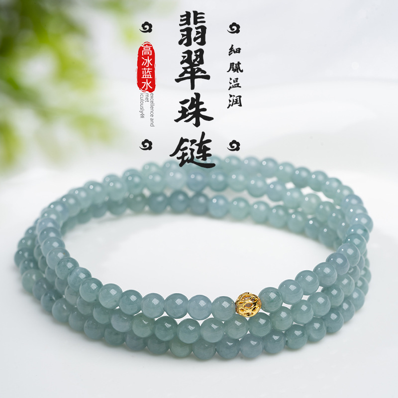 翡翠手串 高冰危地马拉A蓝水翡翠玉石串珠新中式圆珠手链现货批发