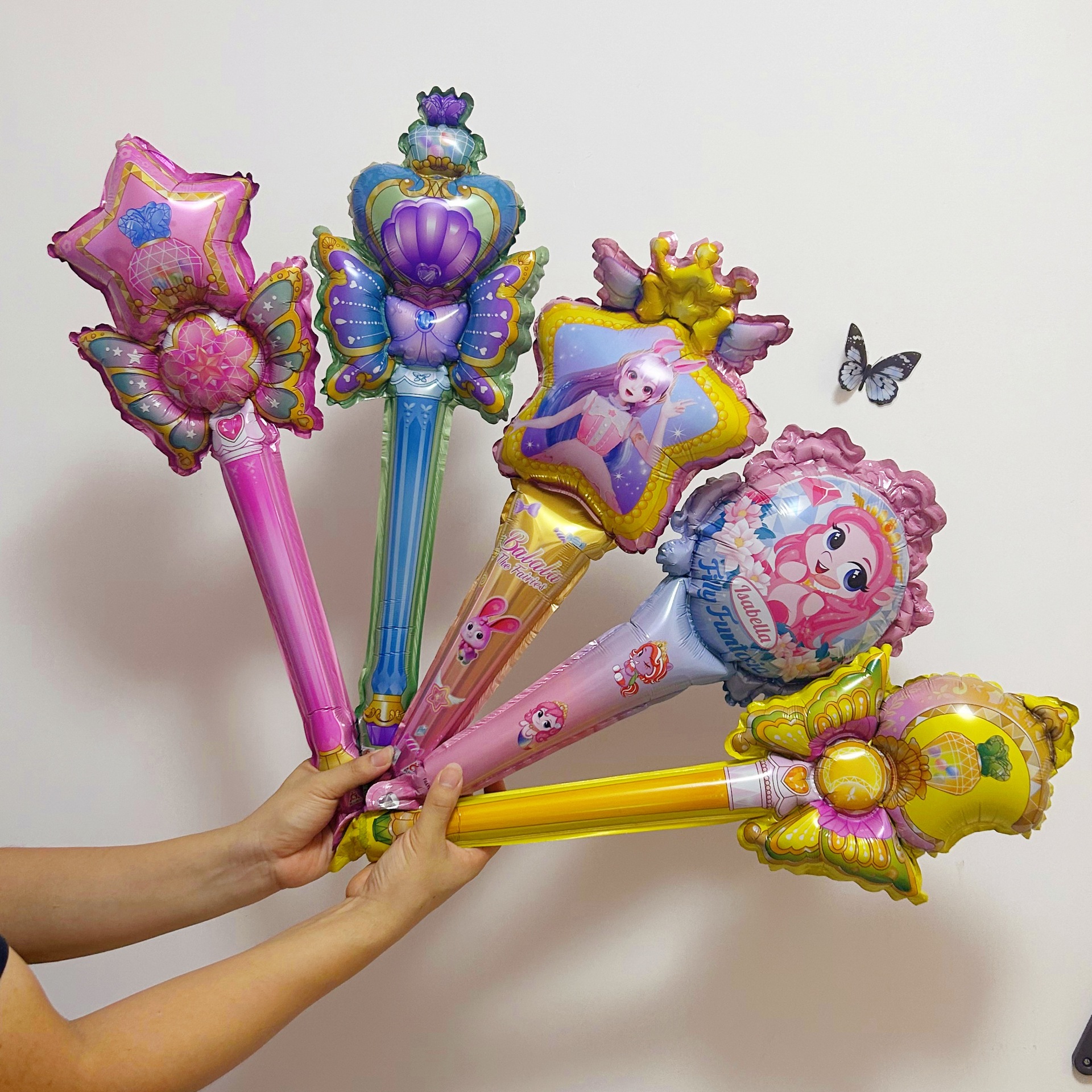 巴ララ小魔仙は棒魔法棒風船幼稚園の子供の誕生日の奨励プレゼントを持っています。