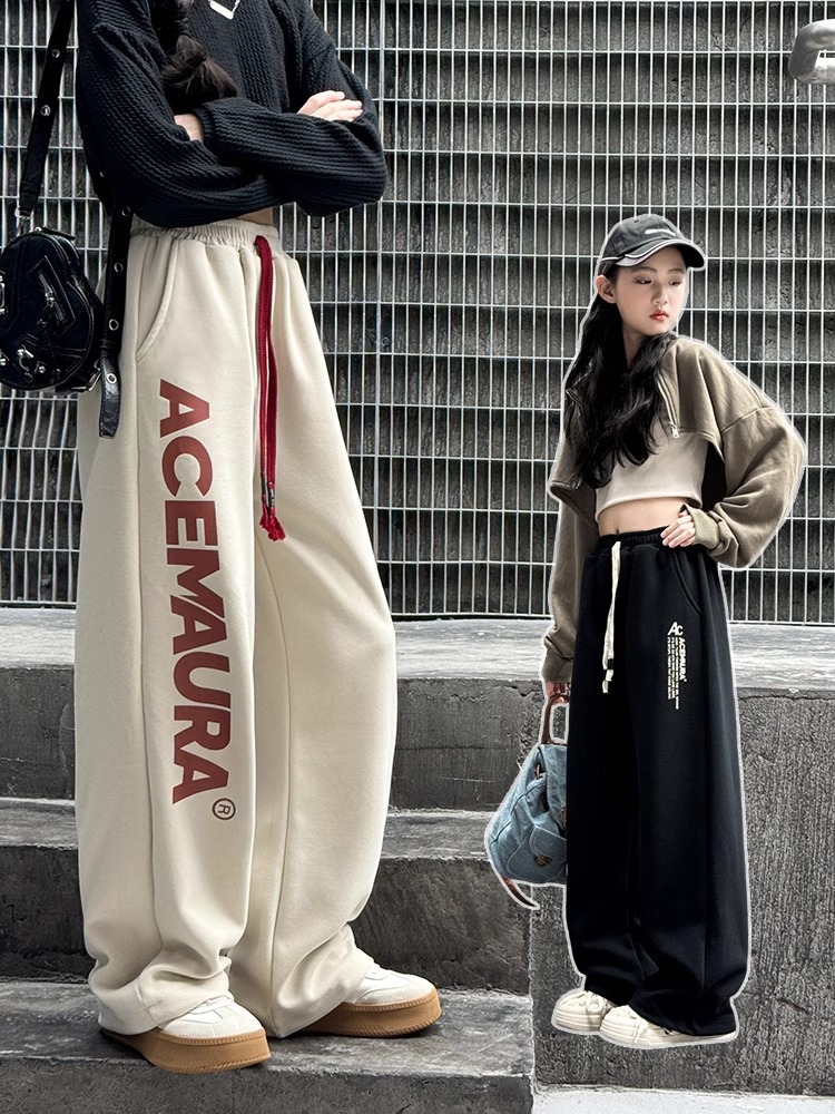 女の子の衛のズボンの春秋の2025の新型の洋気の中で大きい子供のカジュアルなゆったりしているストレートなズボンの秋の服装の広い足の長いズボン