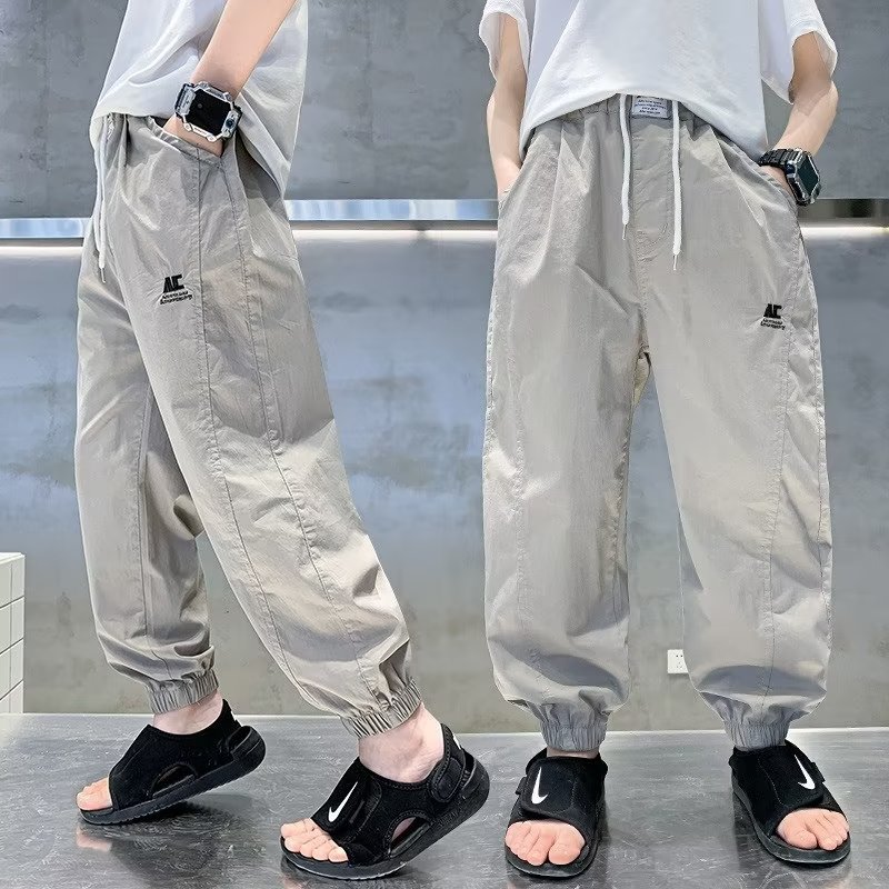 アイスシルククールボーイズ速乾性夏の新スタイル 2025 子供の薄いスポーツ中型および大型子供学生防蚊パンツ卸売