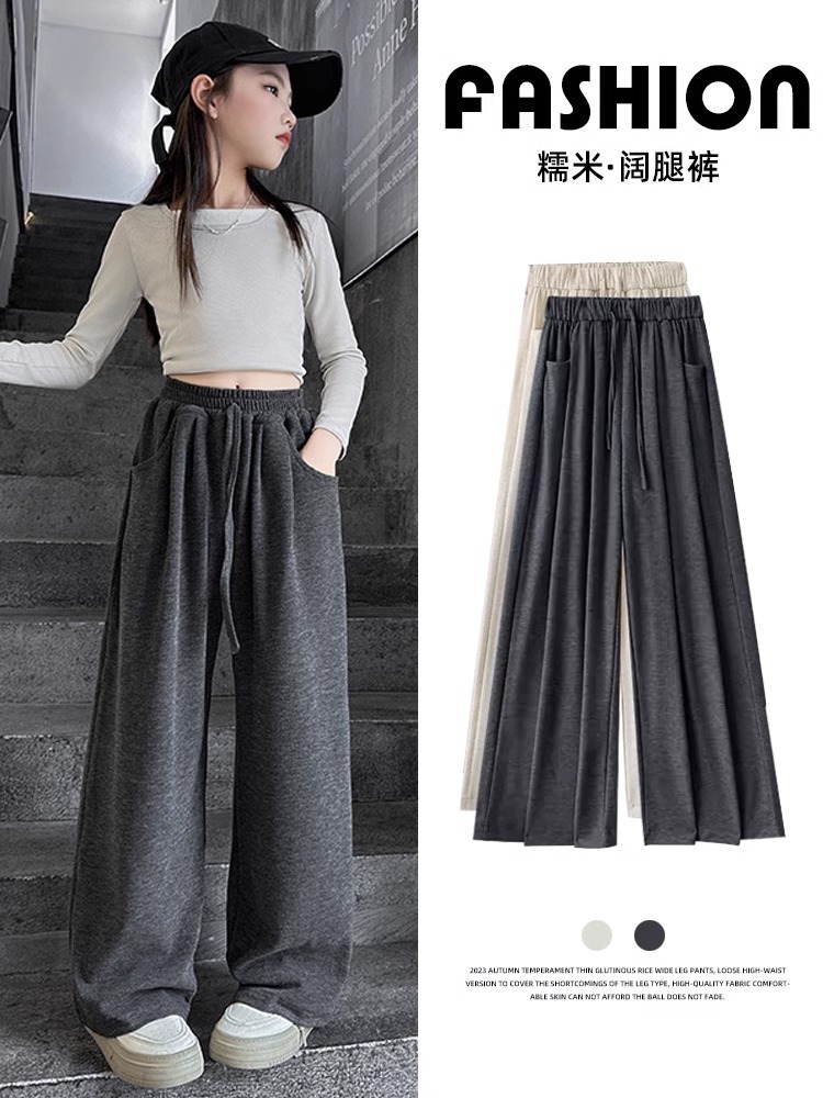 女の子の広脚ズボン春秋2025新型洋気子供の垂感カジュアルパンツ大童秋冬ファッションもち米ズボン