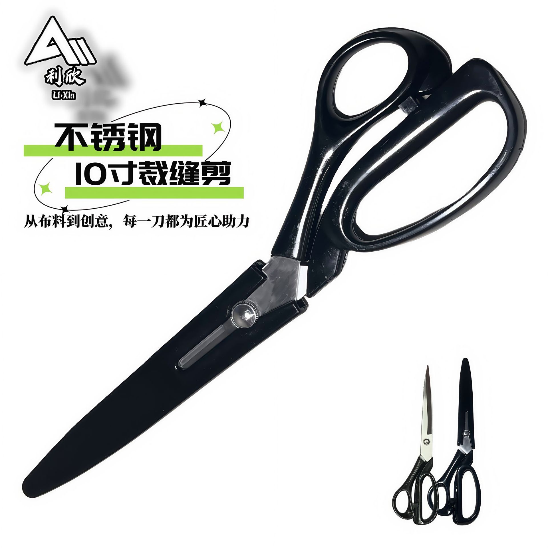 不锈钢裁缝剪黑刃服装裁剪专用剪刀手工家用剪刀十寸裁布剪