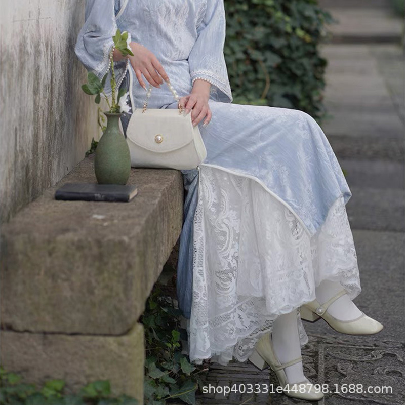 旗袍内衬蕾丝衬裙百搭淑女打底蕾丝松紧复古旗袍搭配中长款半身裙