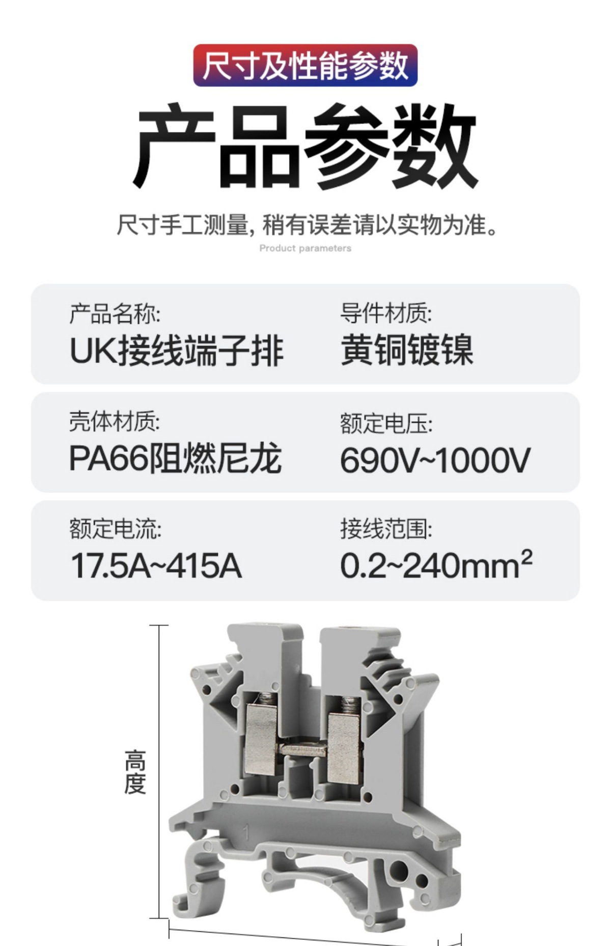 UK配線端子列純銅難燃UK2.5Nレール式配電箱二次通用接続列試験アース
