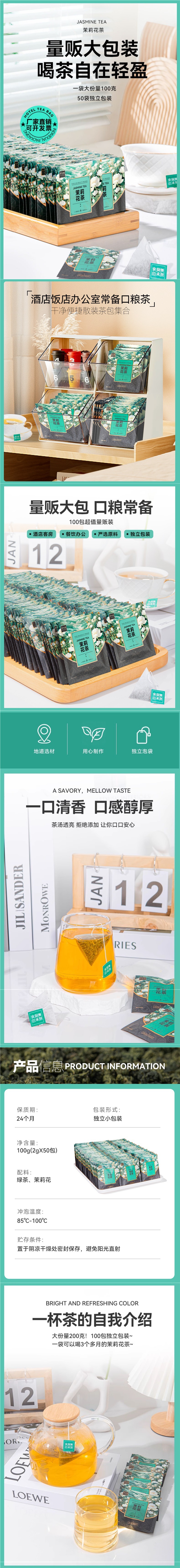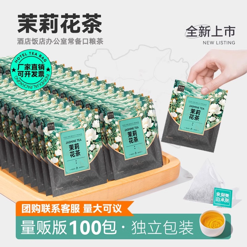 茉莉花茶100包独立小包装茉莉绿茶袋泡茶叶 客房餐厅酒店茶包