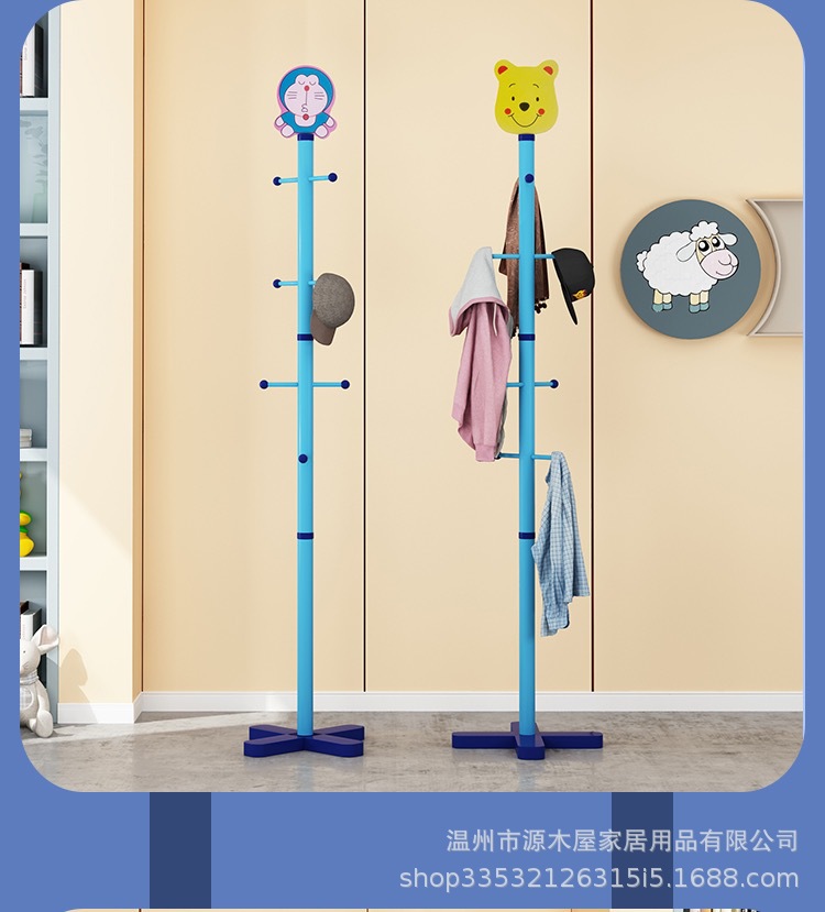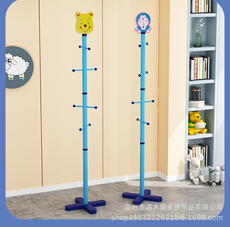 無垢材コートラッククリエイティブかわいい漫画洋服ラック子供服ハンガー床置き寝室収納小さな洋服ハンガー