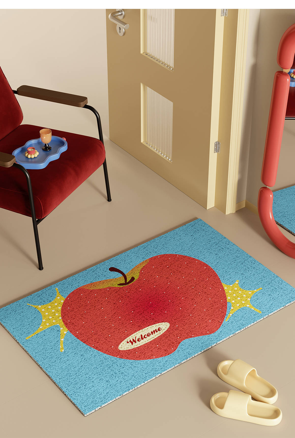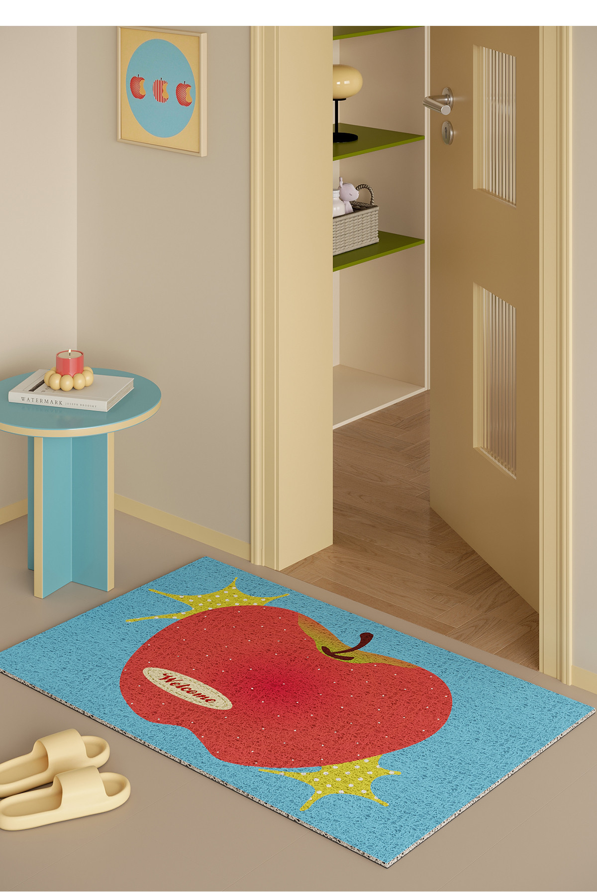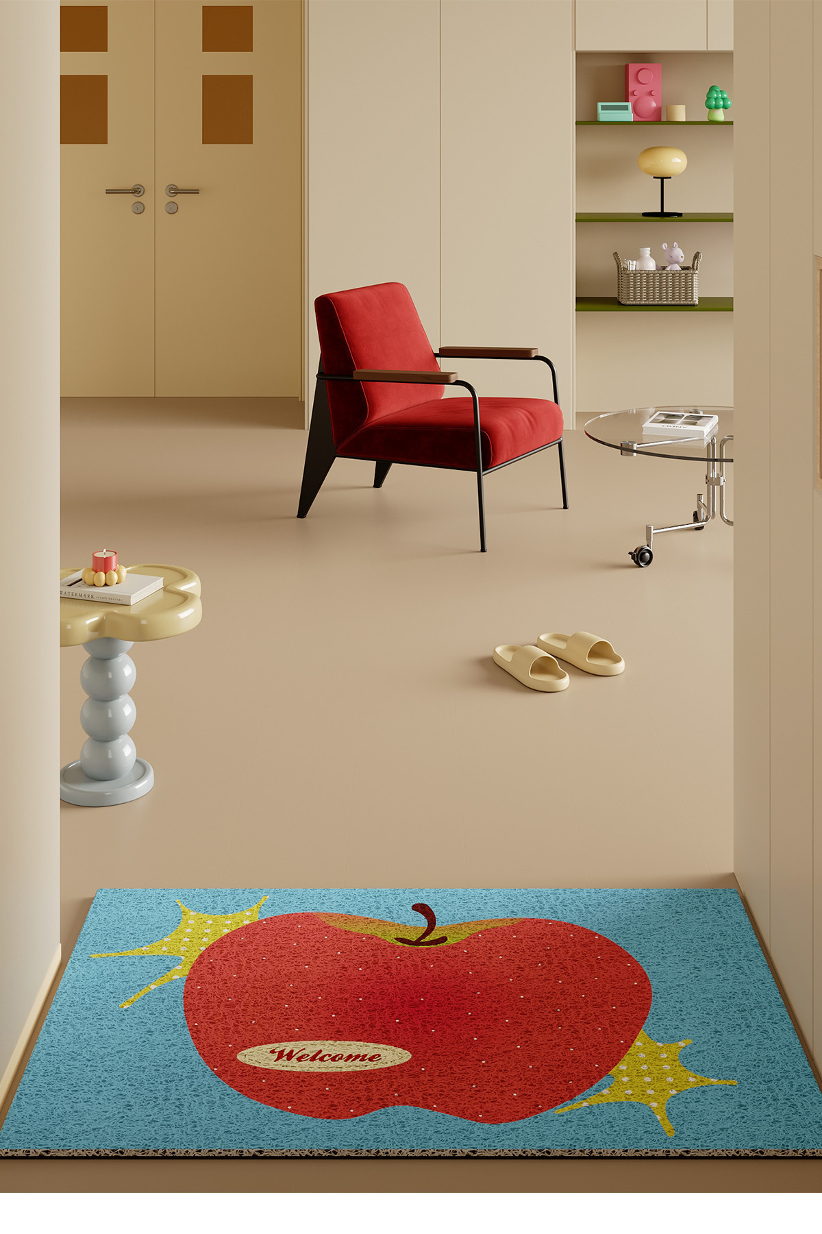 亚马逊拼色苹果丝圈入户地垫门口家用可裁剪pvc耐脏防滑除尘脚垫