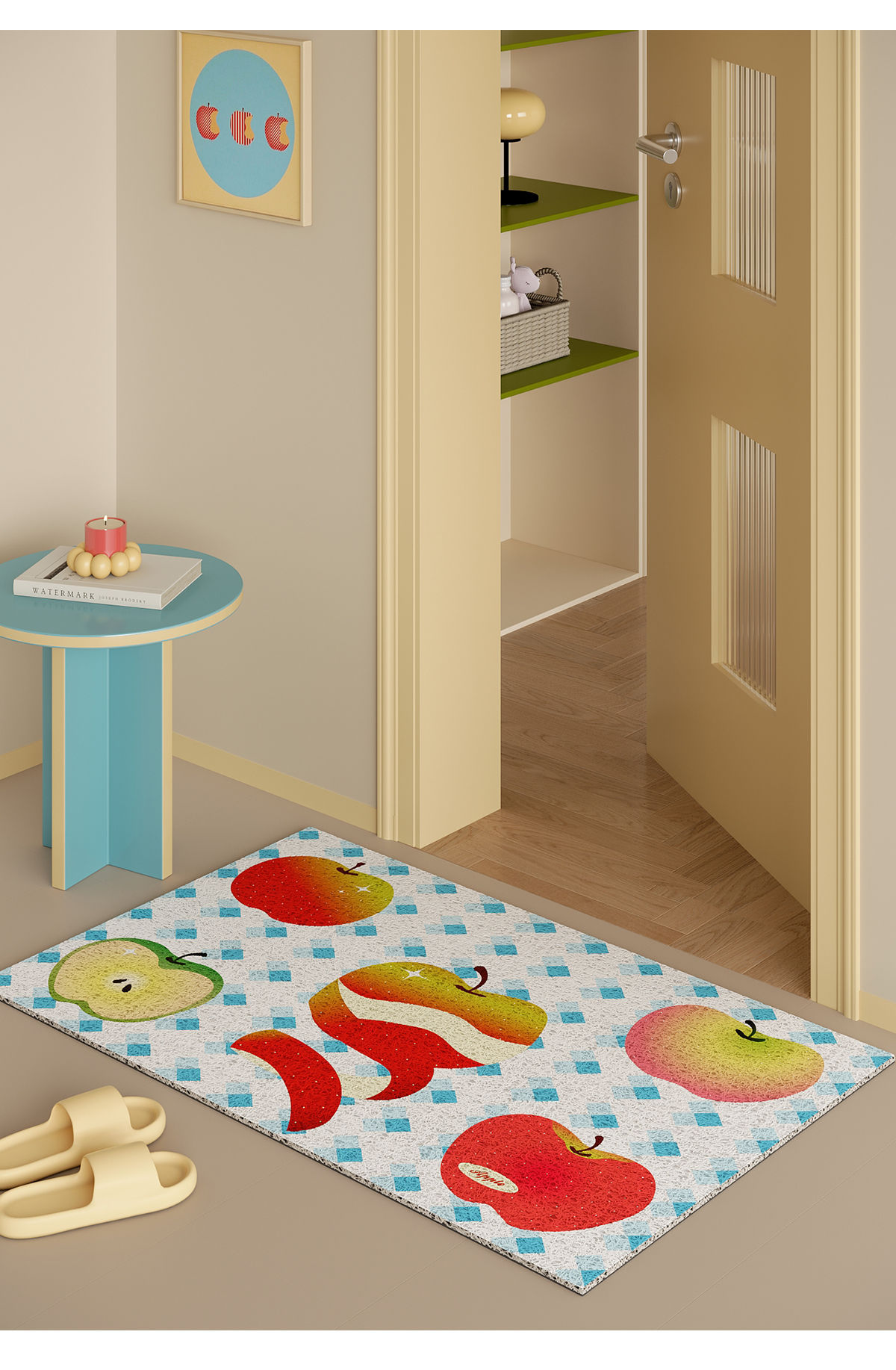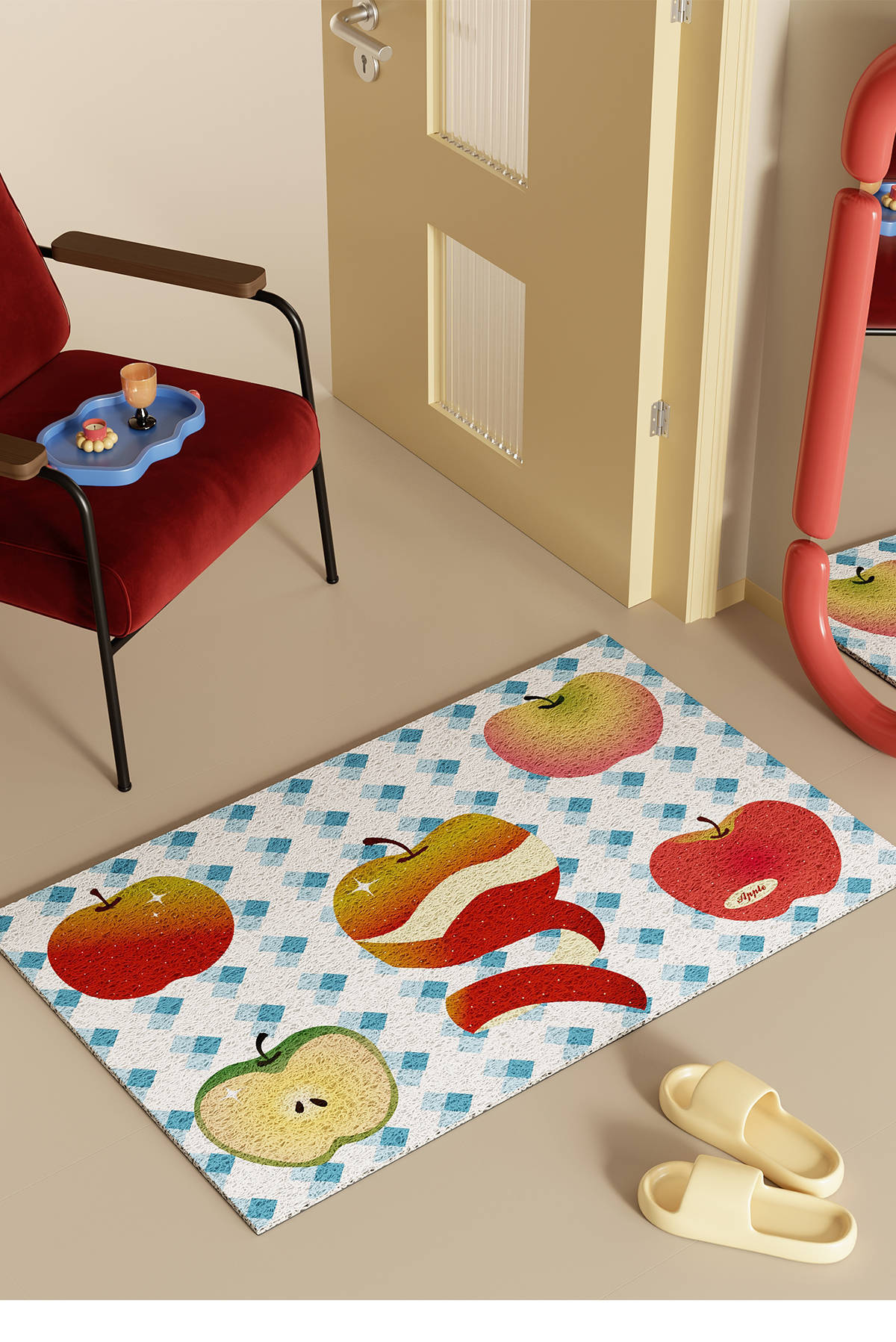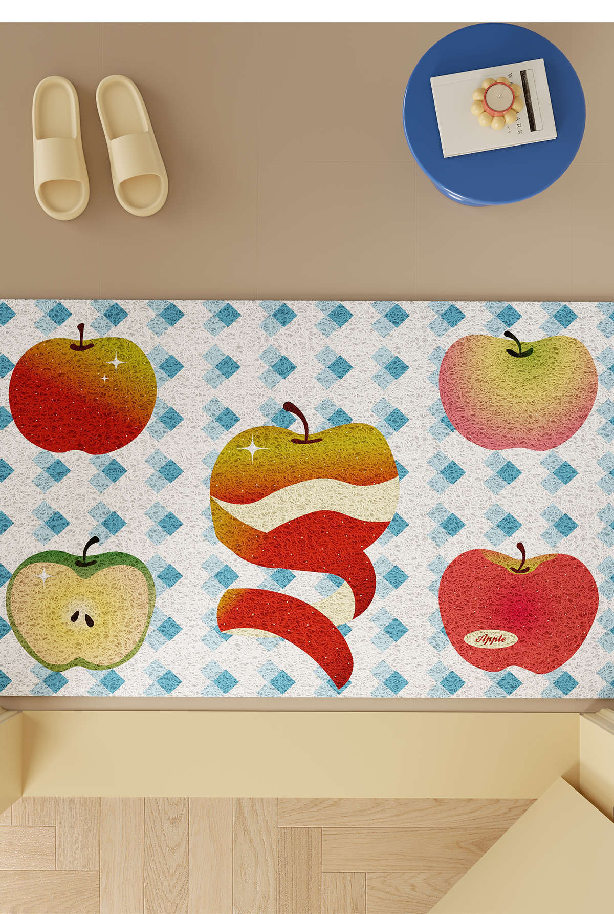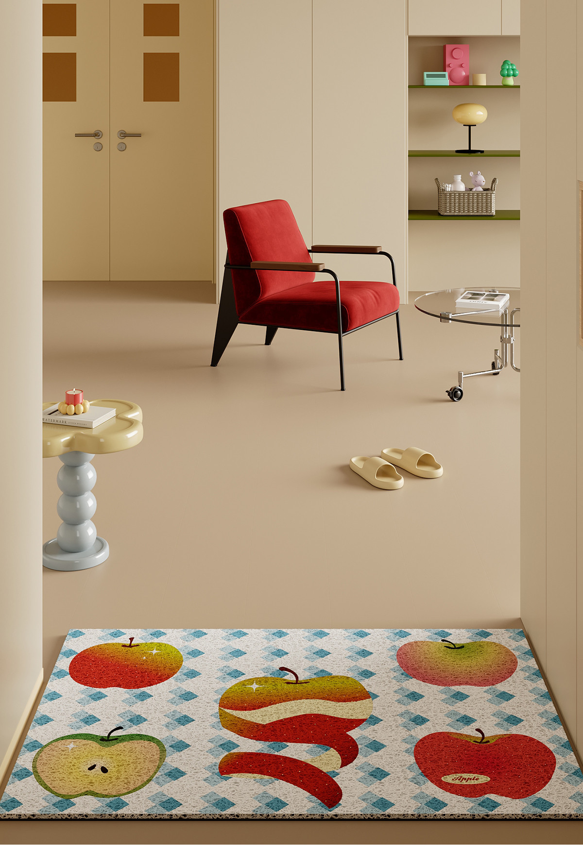 亚马逊拼色苹果丝圈入户地垫门口家用可裁剪pvc耐脏防滑除尘脚垫