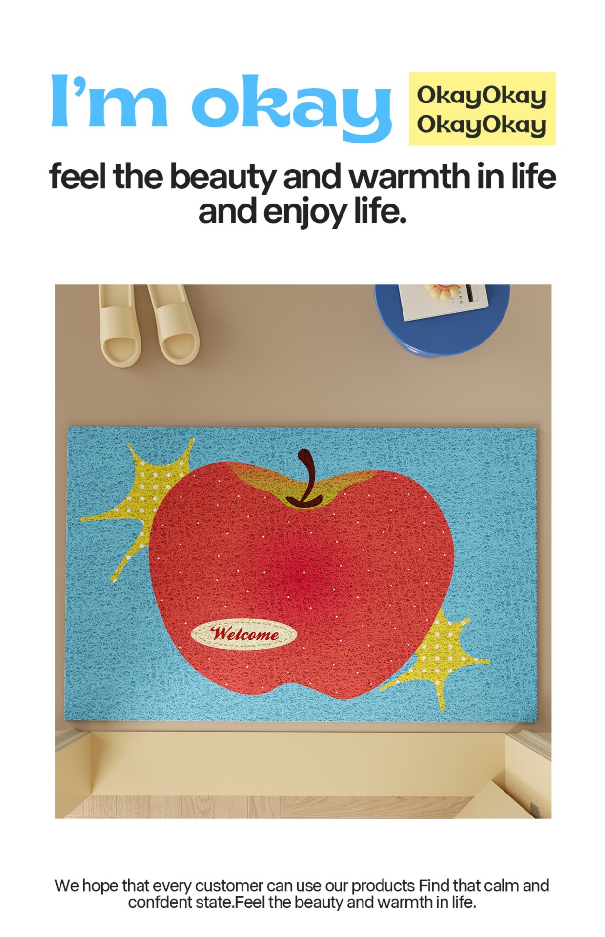 Okay清新なリンゴの糸の輪は家に入って玄関の家庭でpvcの汚れに強い滑り止めの除塵マットを裁断することができます。