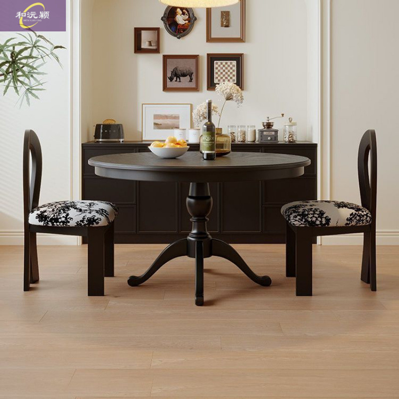 アメリカ式レトロ家庭用食卓フランス式豪華古風円形実木食卓テーブルと椅子の黒い小戸型食卓