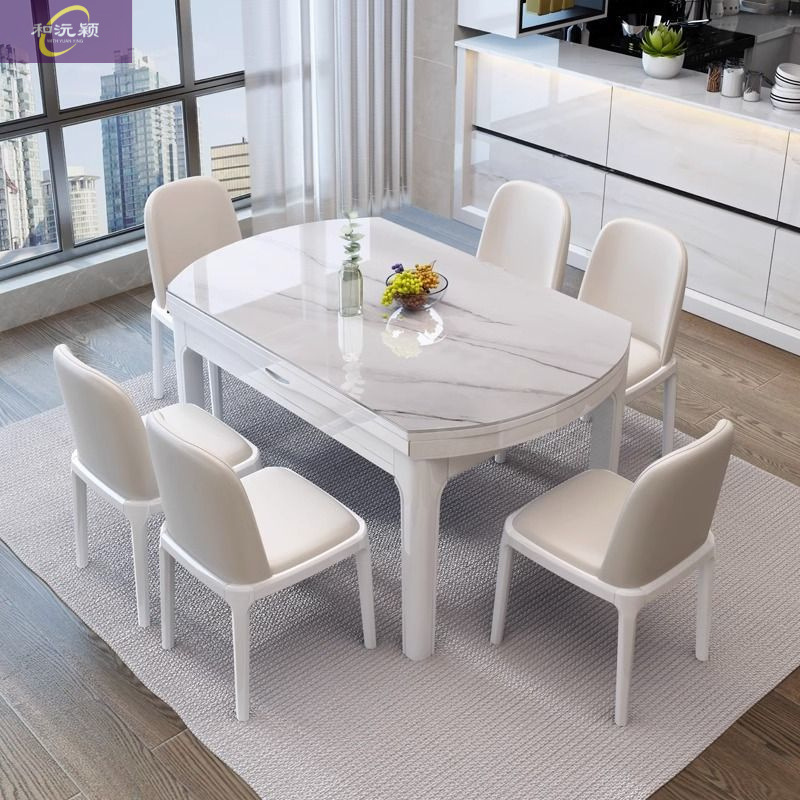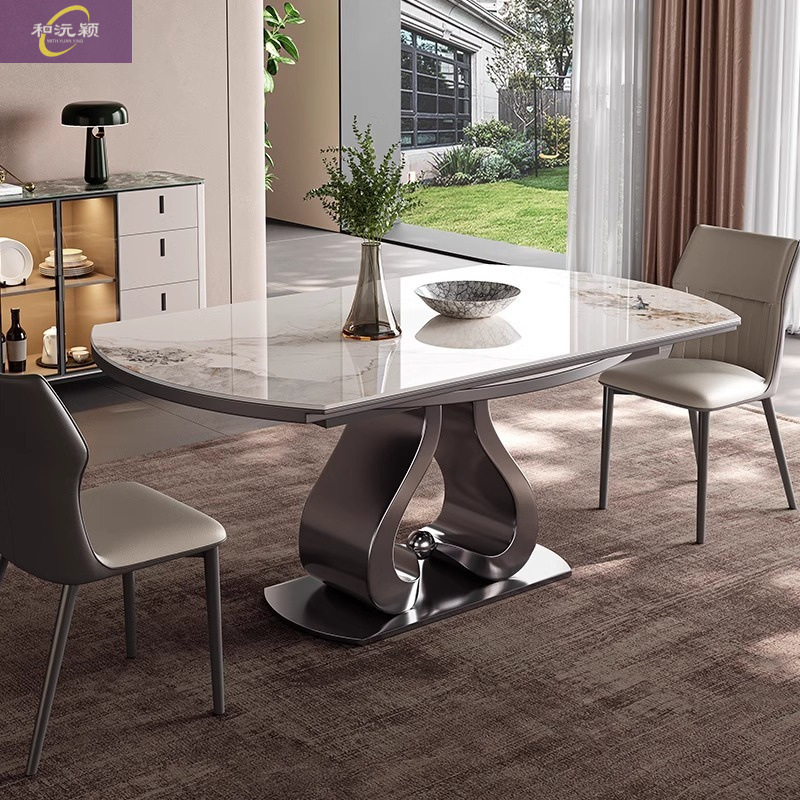 モダンでシンプルな家庭用ロックプレートダイニングテーブル、正方形と円形の両用、静かな高級雰囲気の折りたたみ式拡張可能なダイニングテーブル