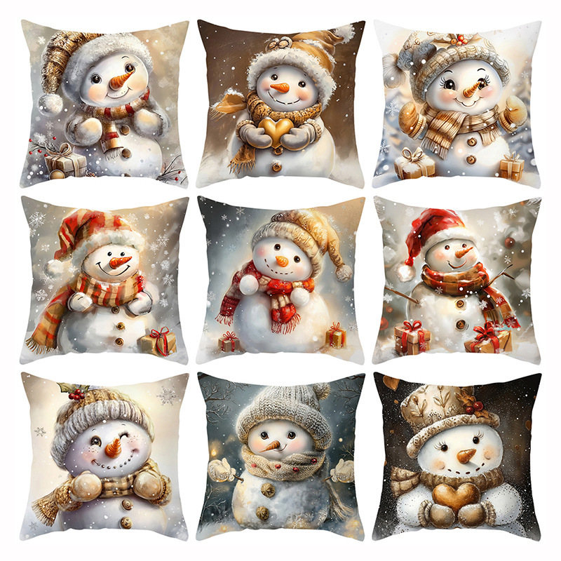 クリスマス柄のホットな人気商品、ホリデープリントの装飾ソファクッションカバー、雪だるま柄のクッションカバー(中身は含まれていません)