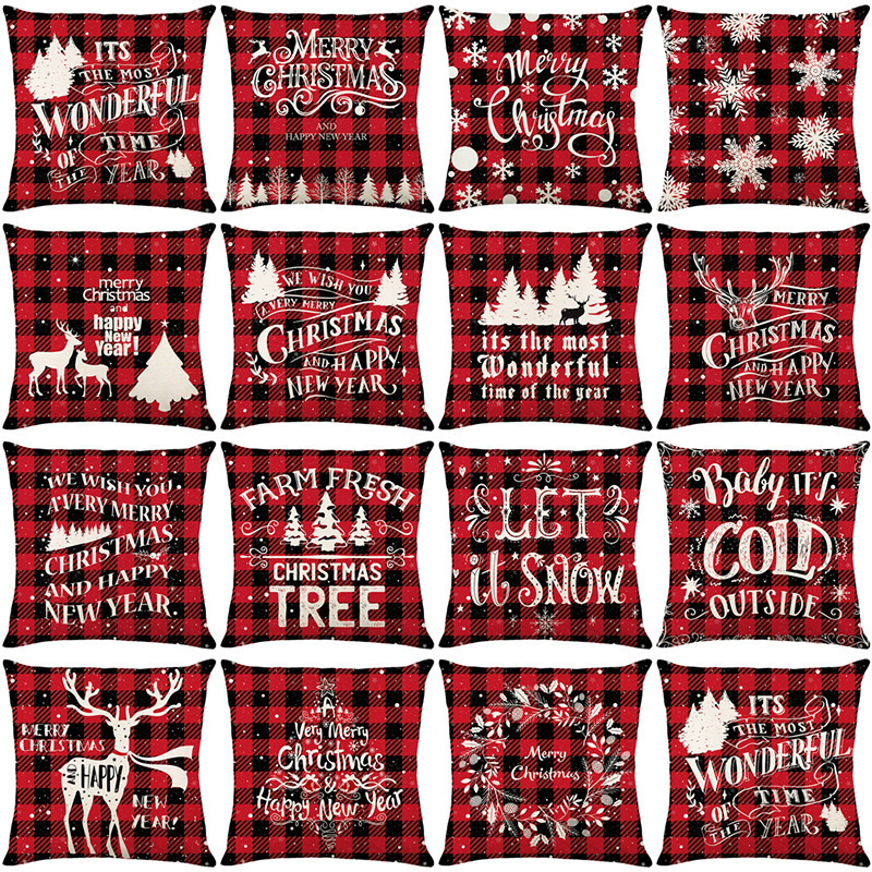 アマゾンの亜麻の家の赤い黒い格子のクリスマスのプリントのヘラジカのアルファベットのクッションカバーの抱き枕カバーのソファーの枕カバー