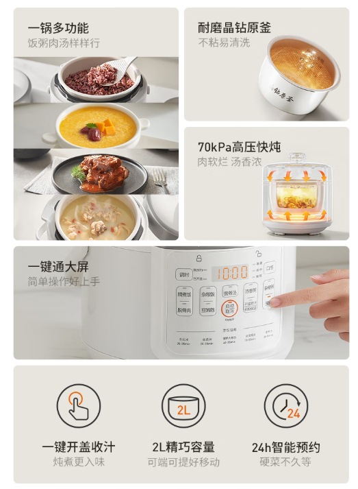Joyoung Y-20H20 電気圧力鍋圧力鍋スマート予約タッチパネルオープン蓋鍋調理お粥鍋
