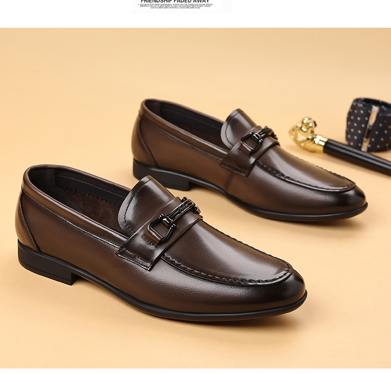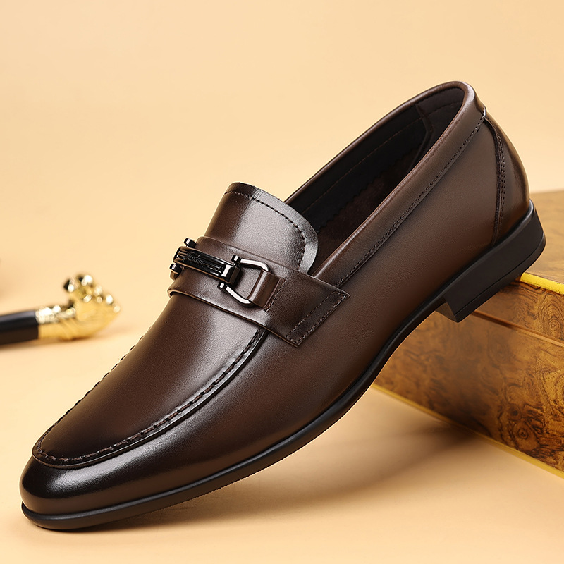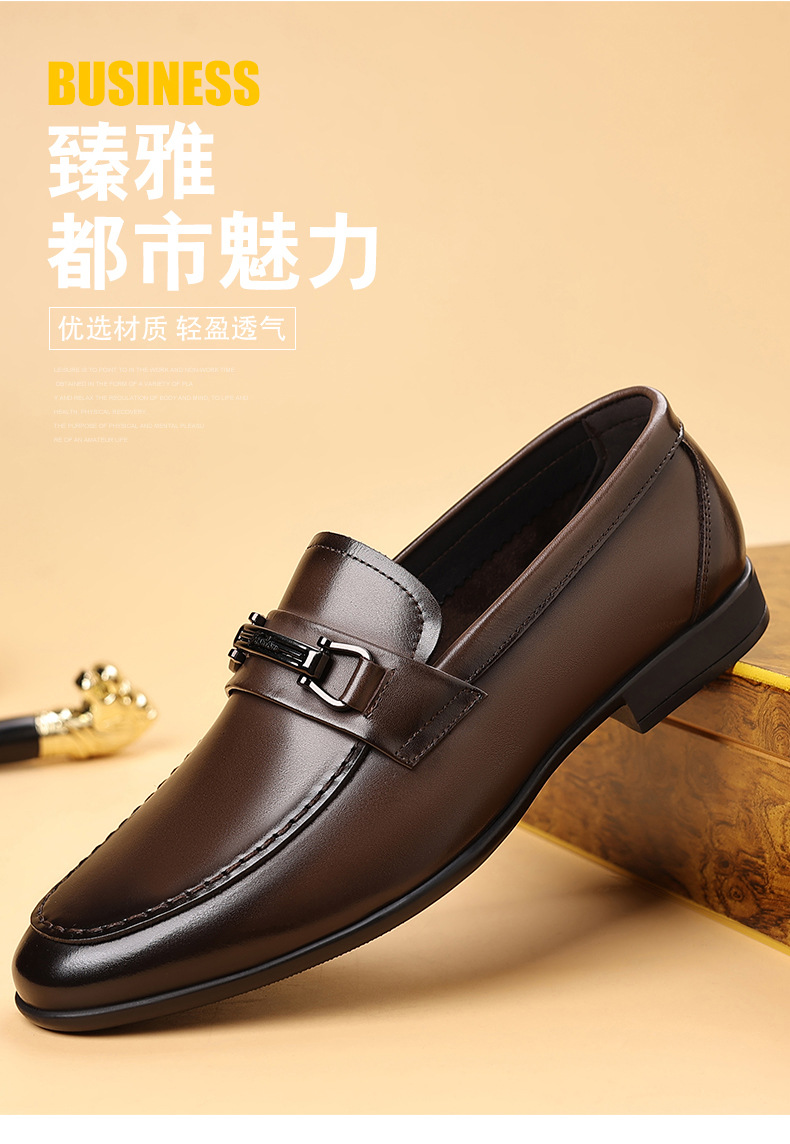 新商品の男性靴軽豪華高級男性靴の頭層牛革軽英倫ファッション楽福靴正装ビジネスブーム