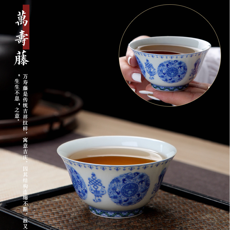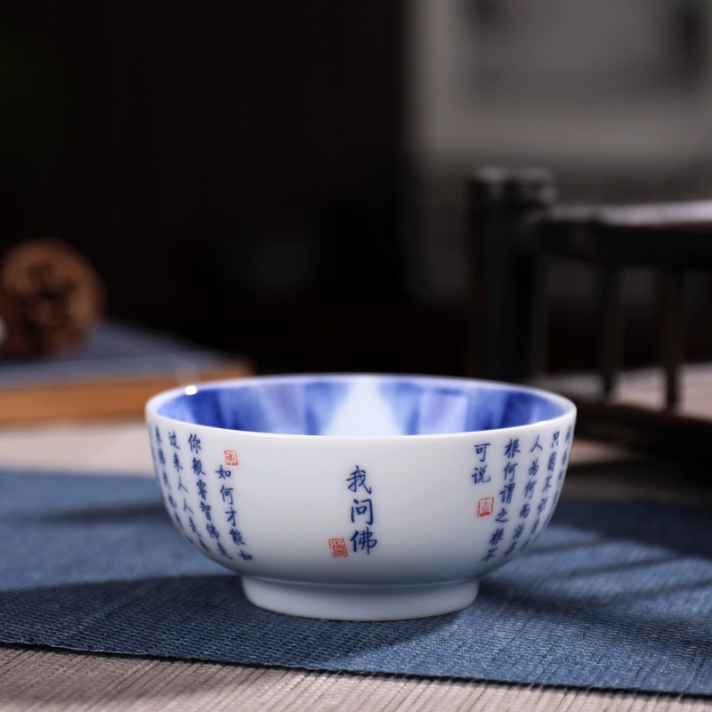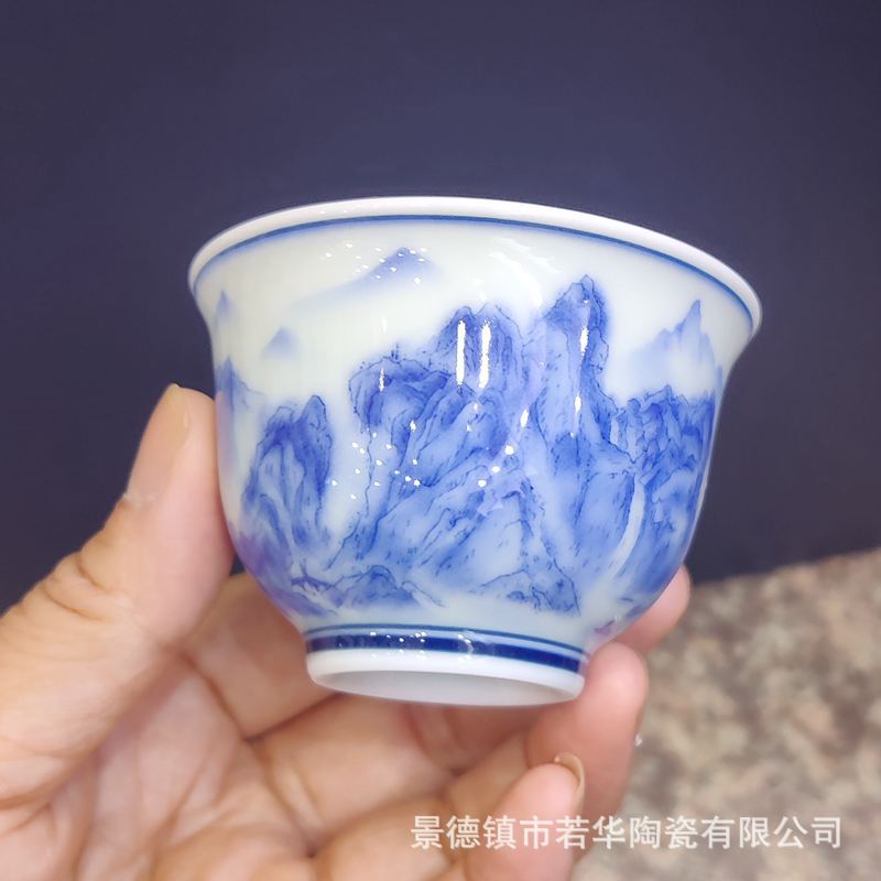 景徳鎮セラミック絶妙な磁器青と白のティーカップ家庭用中国手描きカンフーティーカップ小容量カップ