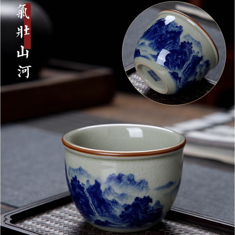 景徳鎮セラミックマスターカップシリンダーカップ青と白のカップティーセット大容量ティーセット横たわっている古い粘土大容量カップ
