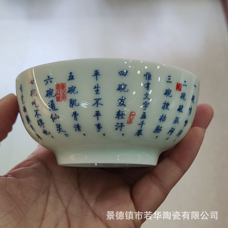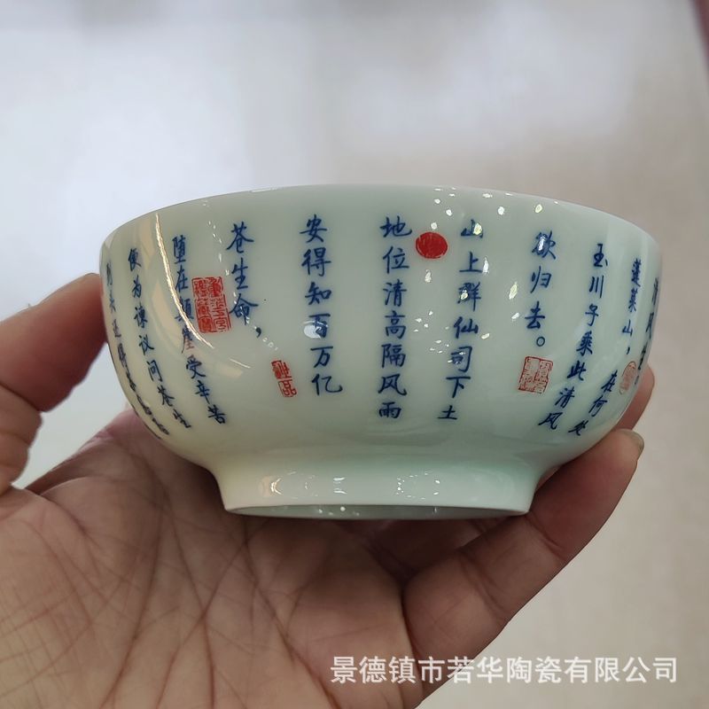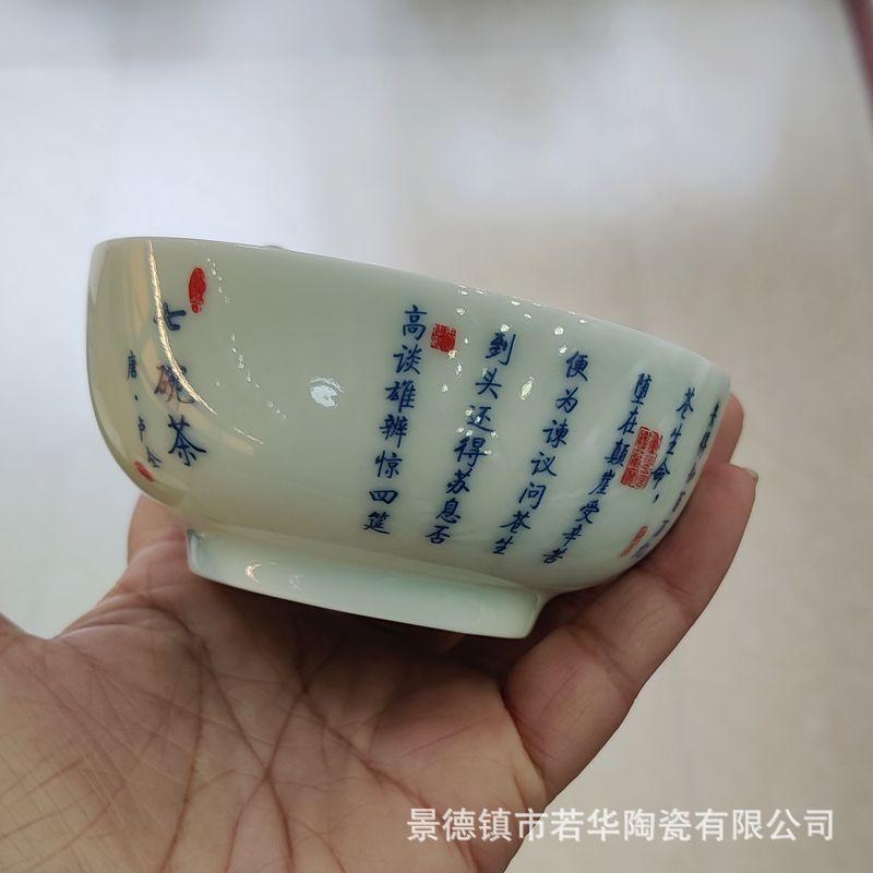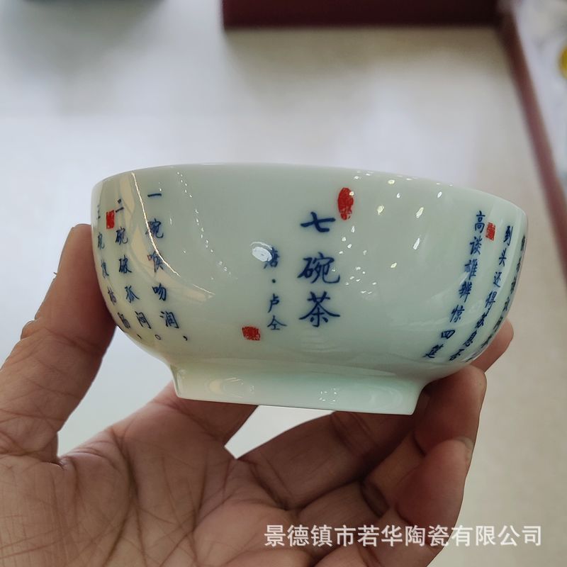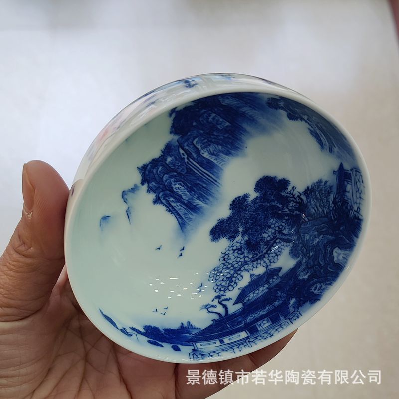 景徳鎮の陶磁器のコップの高白泥の青と白のお茶の杯の詩の詩の7碗のお茶の中の山水の単一の主人の杯のお茶の杯