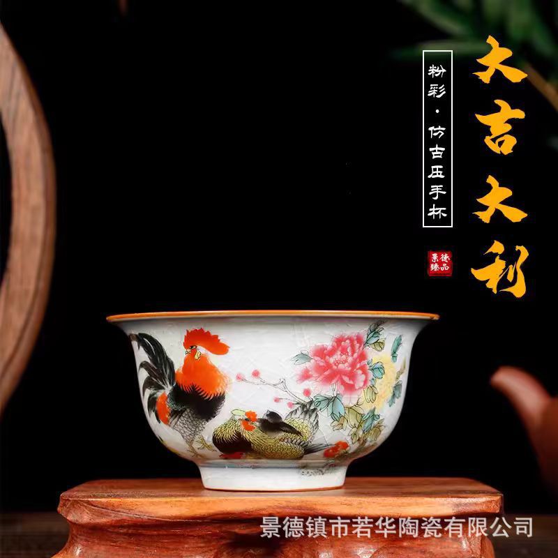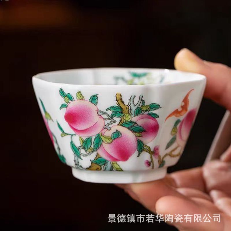 景德镇陶瓷主人杯过枝方杯寿桃粉彩主人杯大容量茶杯家用品茗杯