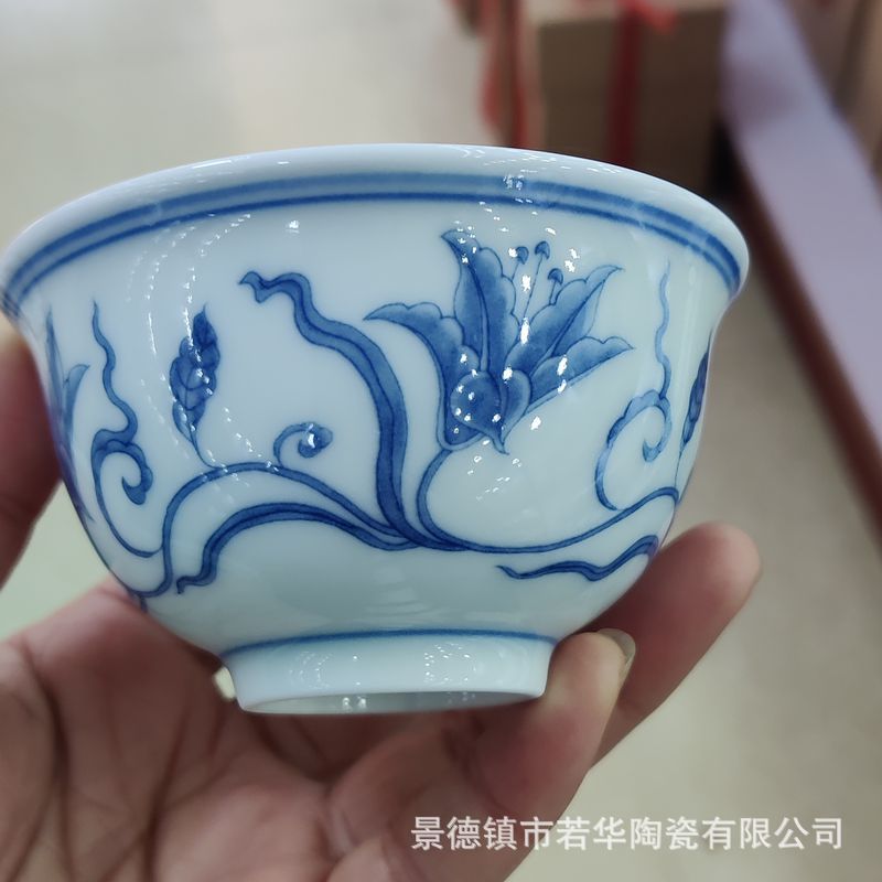 青と白の花を卸売りして、釉薬をかけて、主人の杯の茶器を飾って、古景徳鎮の陶磁器の工夫の個人の杯の湯飲みをまねます。