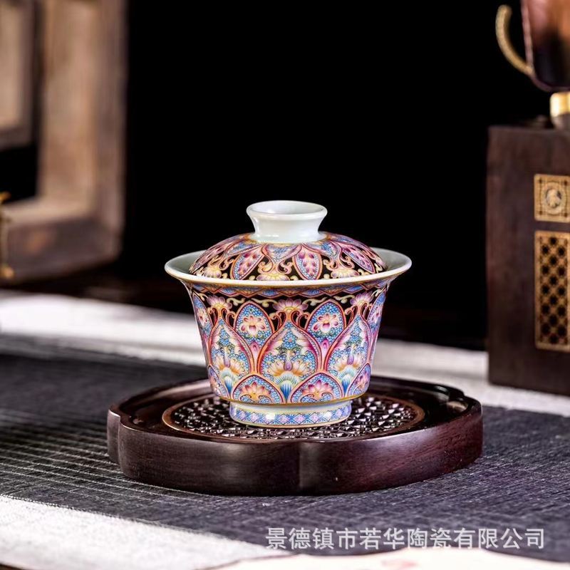 景徳鎮の陶磁器のエナメル彩敦煌の主人の杯の杯の杯の工夫の茶器の単一のお茶の杯の2才は碗をかぶせて手の杯を抑えます。