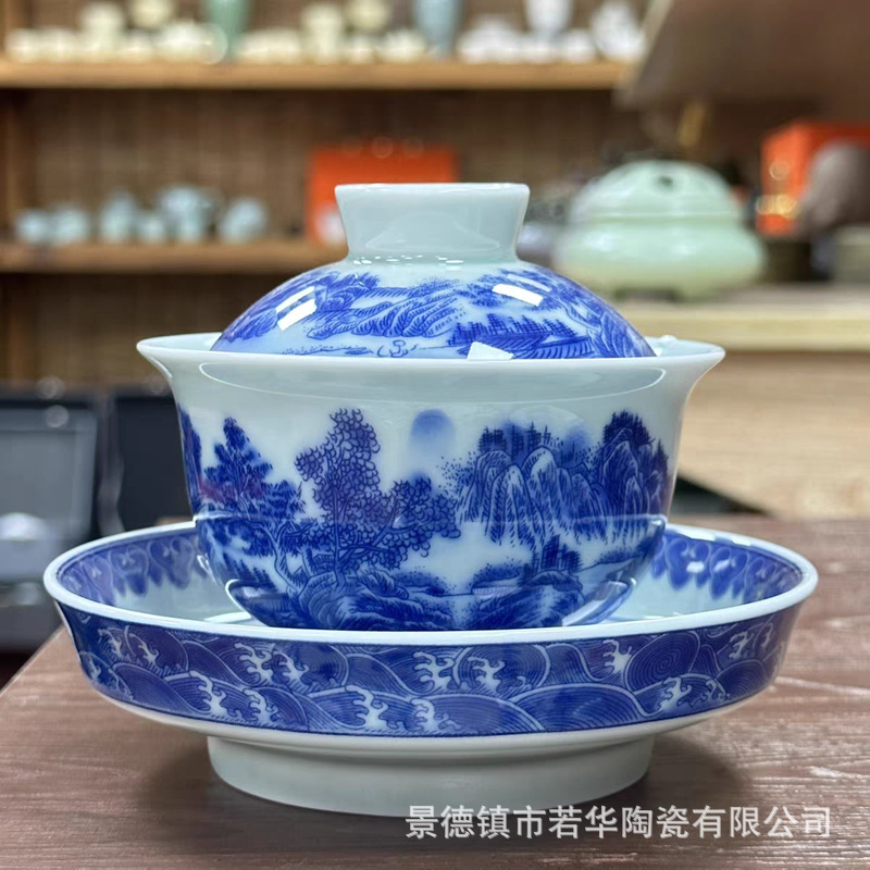 陶磁器セット三才蓋碗老陶泥レトロカンフー茶器茶碗釉薬下虎杯景徳鎮