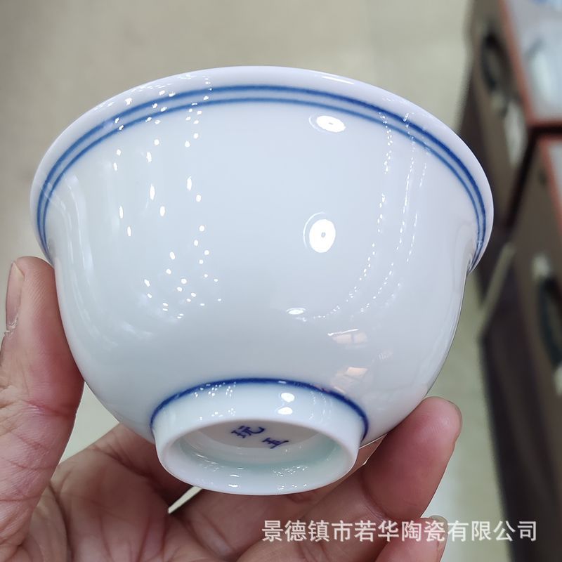 景徳鎮の双線の青い辺の湯飲みの高白の磁器の主人の杯の陶磁器の工夫の湯飲みのお茶の杯のお茶の杯の1杯のメーカー