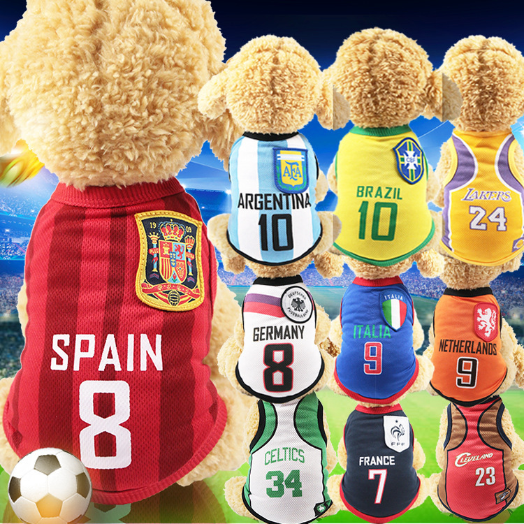 工場直販 ペット用犬用ヨーロッパカップジャージ 猫犬用バスケットボールウェア ワールドカップ服 夏用通気性薄手タイプ