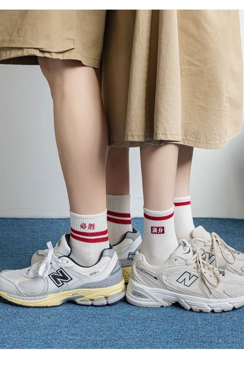 ストッキング女性夏の薄いクリーム系縦条綿中筒靴下ネット赤ショータイプins風無骨ストッキング