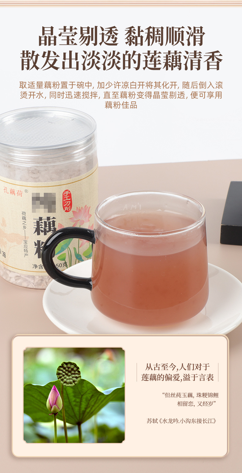 刀削藕粉古法纯藕粉无蔗糖红莲藕羹孕妇代餐冲饮咱家铺子一品堂