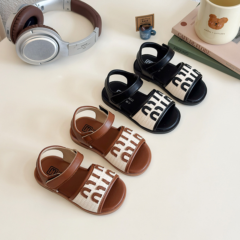 女の子用シューズ 2026年夏新作 女の子用マジックテープシューズ 中高生向け おしゃれな文字入りソフトソールプリンセスサンダル
