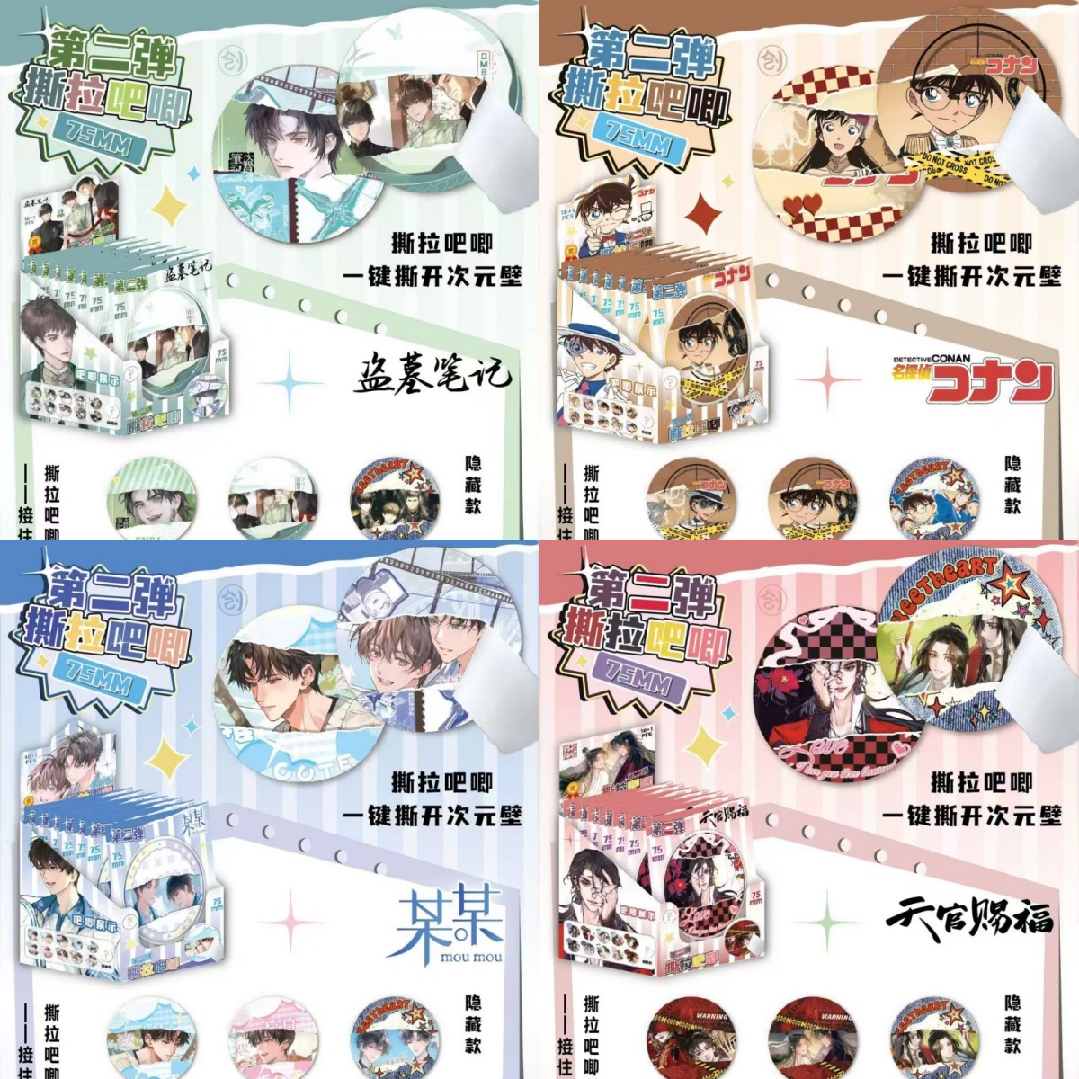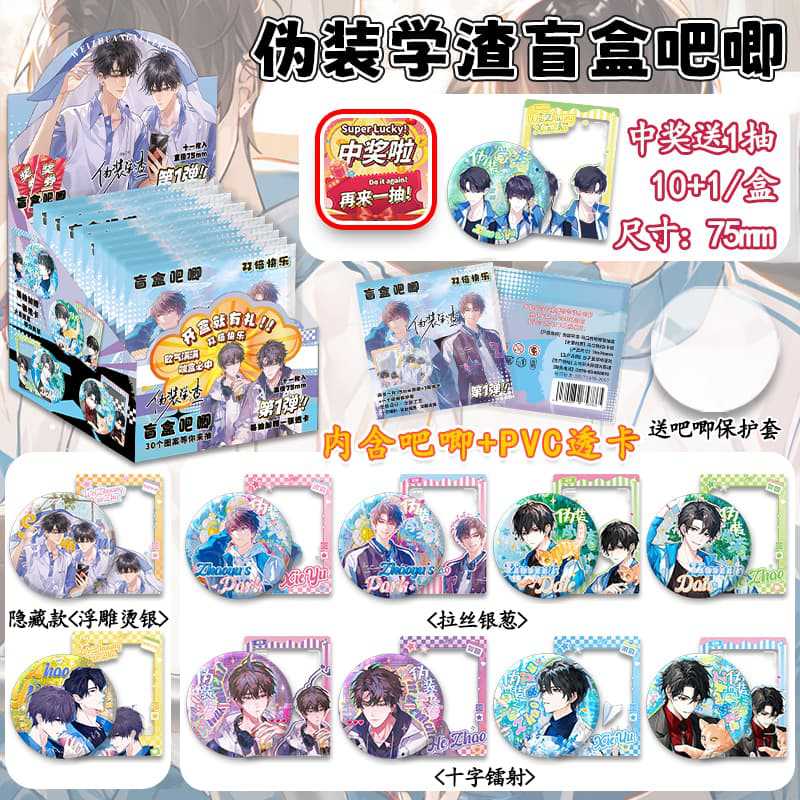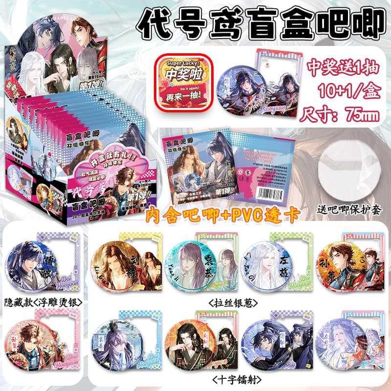 动漫游戏撕拉吧唧盲盒徽章第二弹动漫75MM双闪盲抽吧唧徽章胸针
