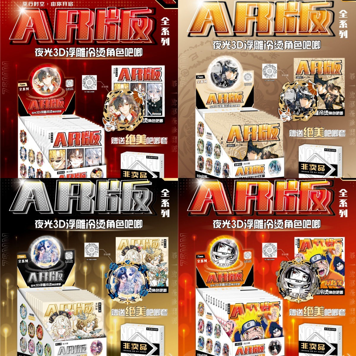 批新款动漫AR挂件吧唧盲盒夜光3D浮雕冷烫谷子+小卡+挂件护套徽章