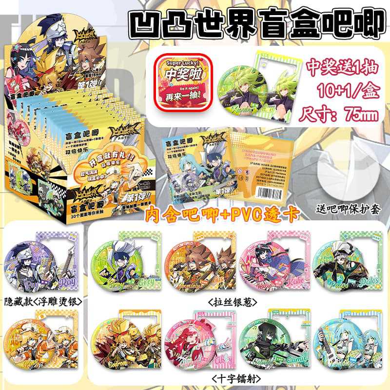 新款凹凸吧唧徽章带小卡盲盒卡通动漫75mm马口铁胸针学生挂件货源