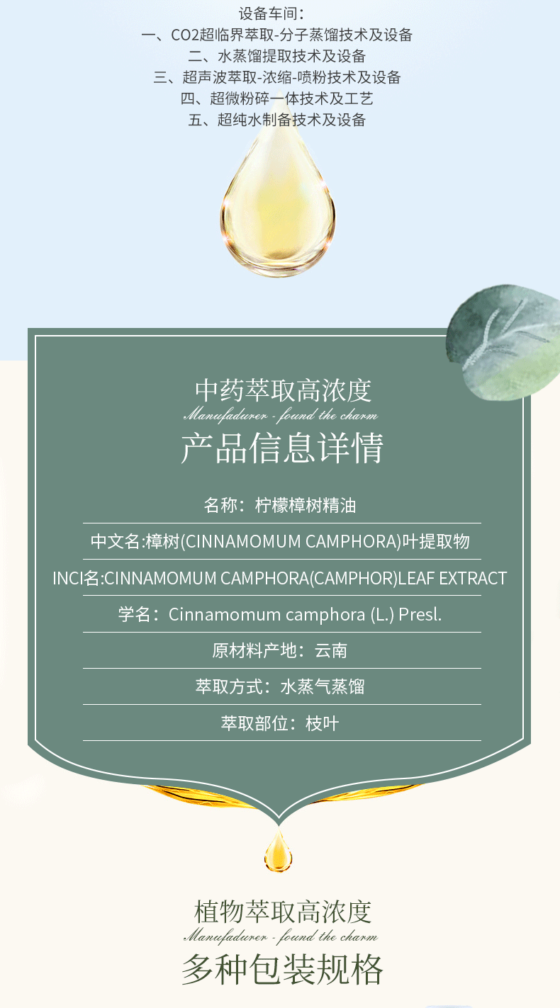 広樟香精油片方精油原料卸売りアロマケア調香薫天植元超臨界