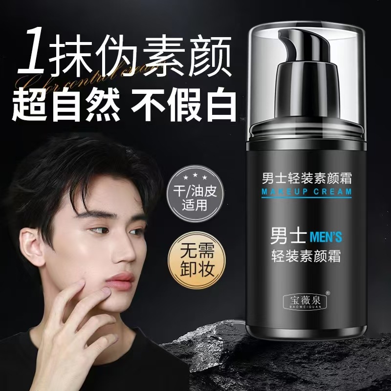 宝薇泉男士素颜霜懒人保湿润肤露遮瑕隔离霜素颜霜控油补水男士