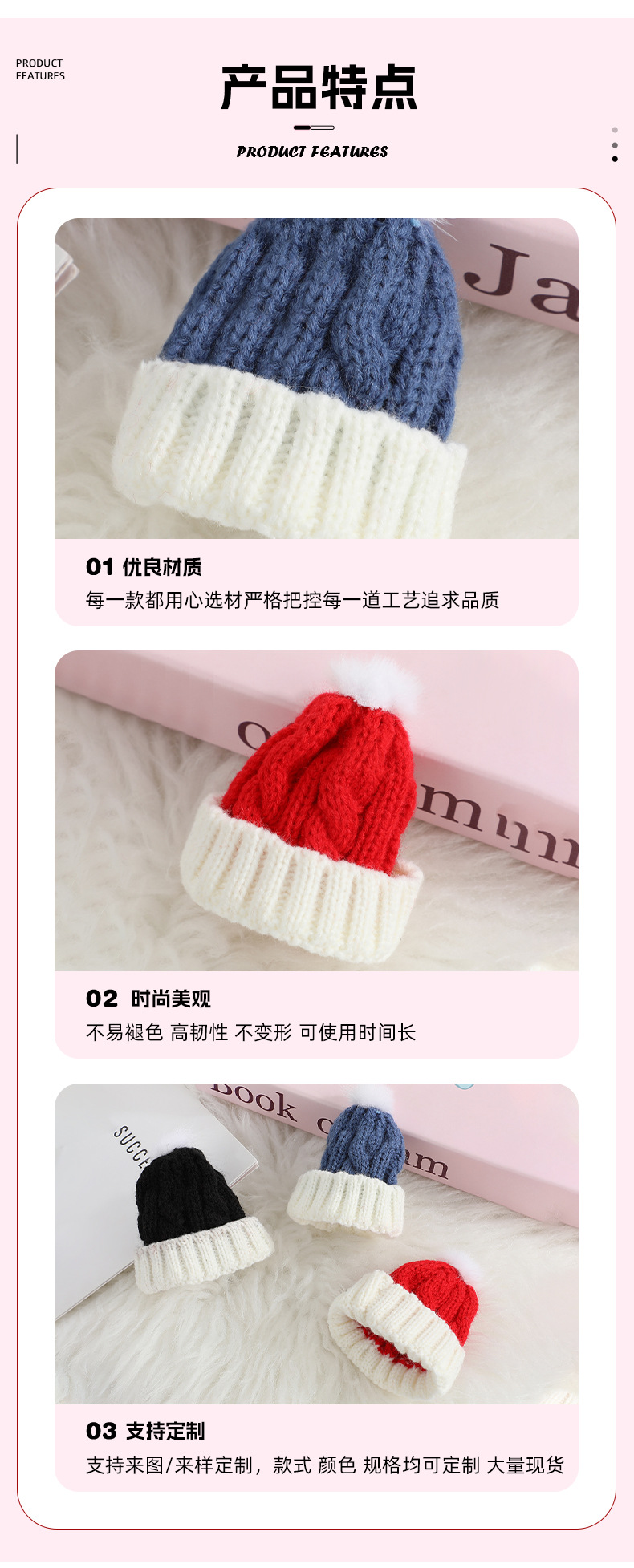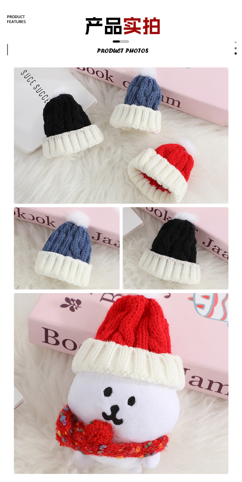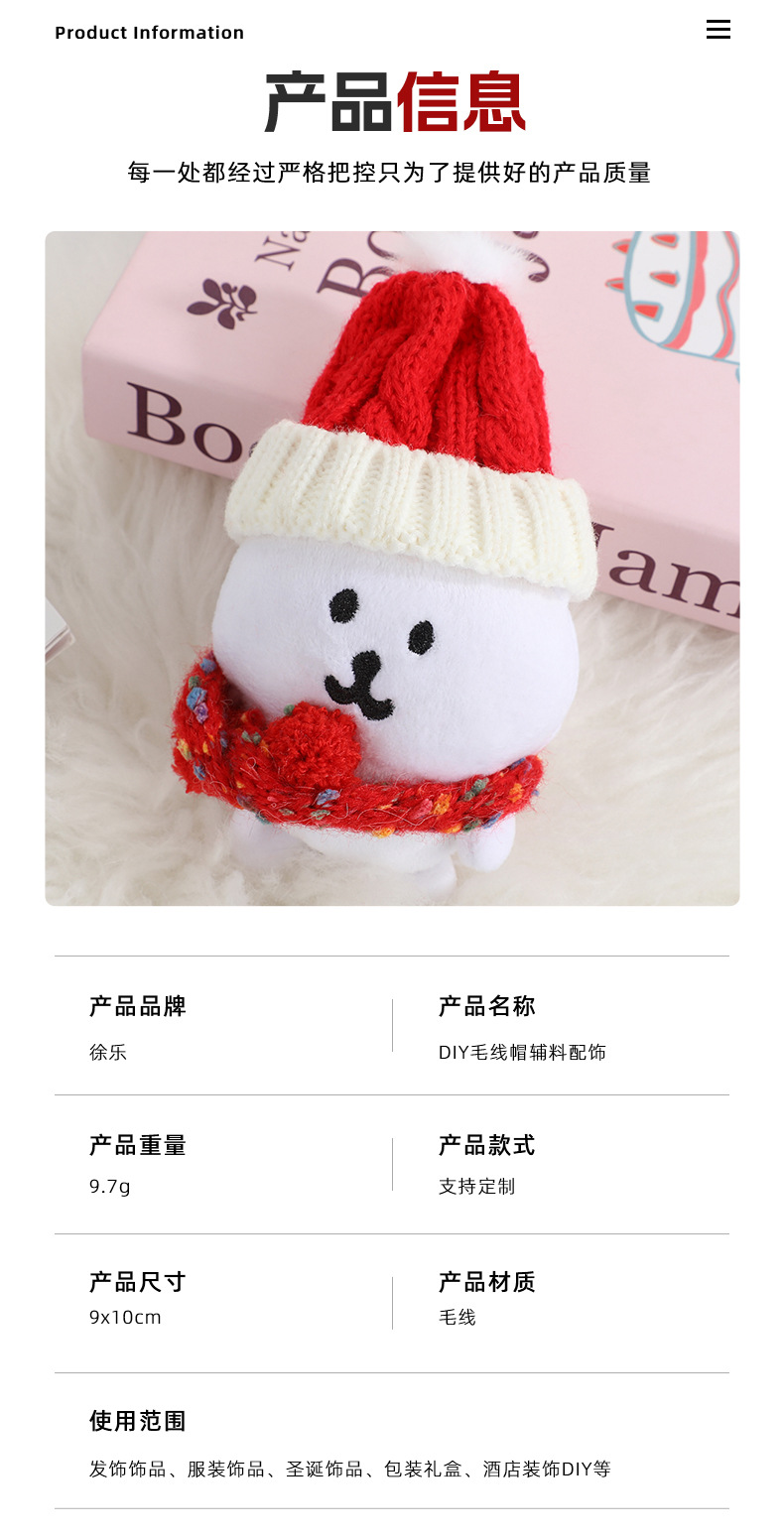迷你红白毛线帽装饰棉花娃娃用编织帽子手套配件可爱自嘲熊毛线帽