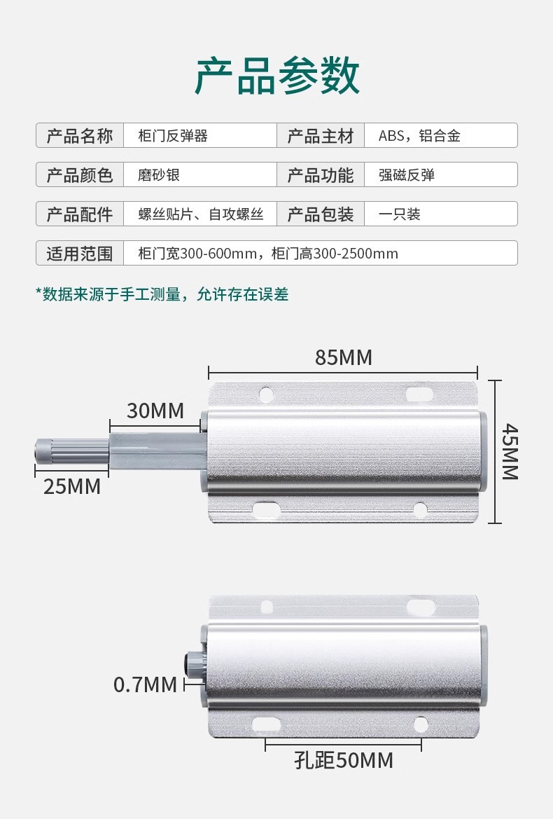 取っ手なしキャビネットドア押弾器磁気タッチキャビネットドア引き出しドアアルミ合金単二金属反発器銀色金色