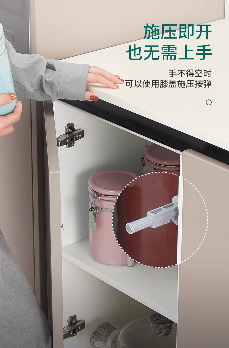 食器棚のドアの反発器にはステンレスのボタン式アルミ合金緩衝器が埋め込まれています。