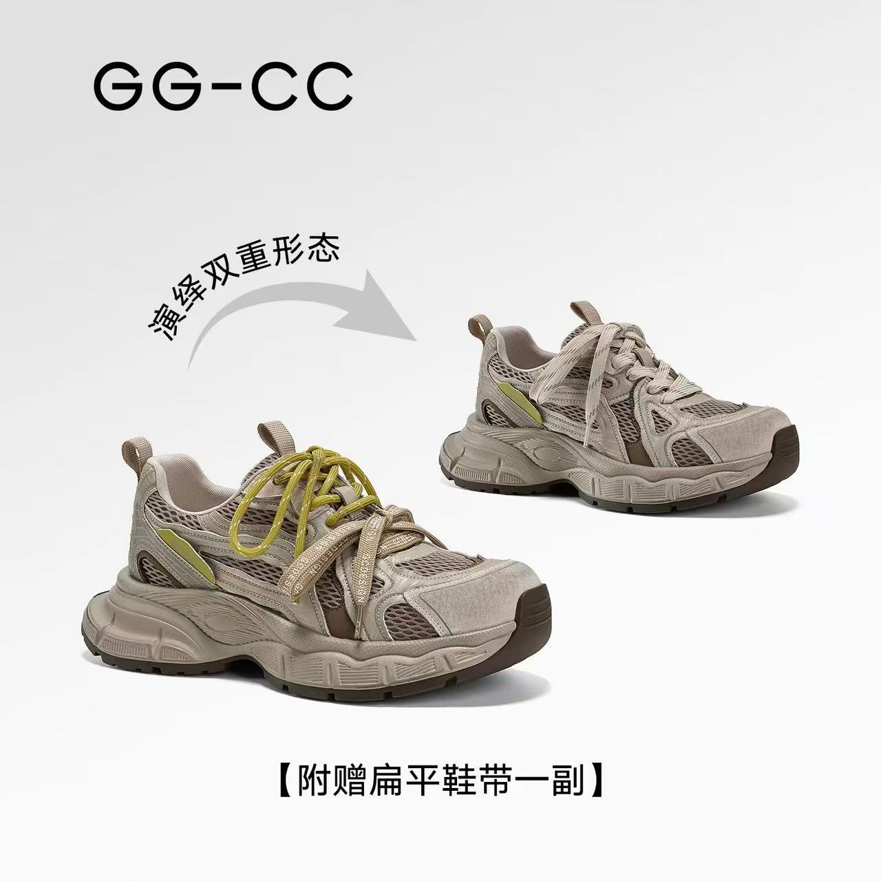 【火星轨迹】GGCC2026年春季新款复古做旧老爹鞋女厚底增高休闲鞋