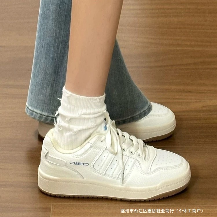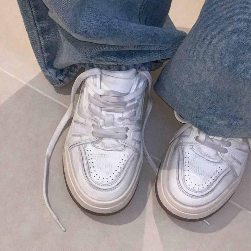 2026铂思早春新款厚底增高小白鞋百搭运动休闲系带做旧女单鞋透气