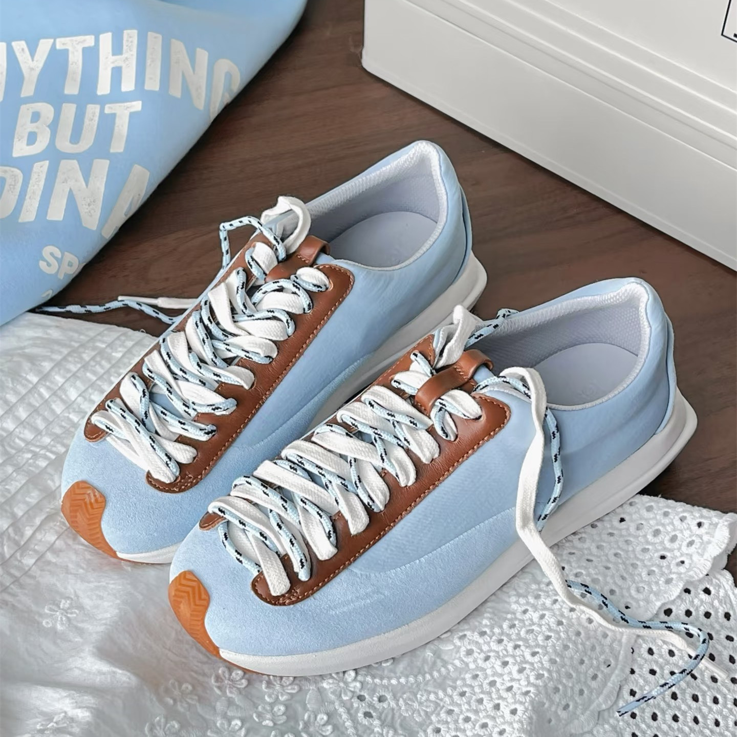 2025早春新款平底真皮拼色系带复古德训鞋阿甘鞋休闲鞋运动鞋板鞋