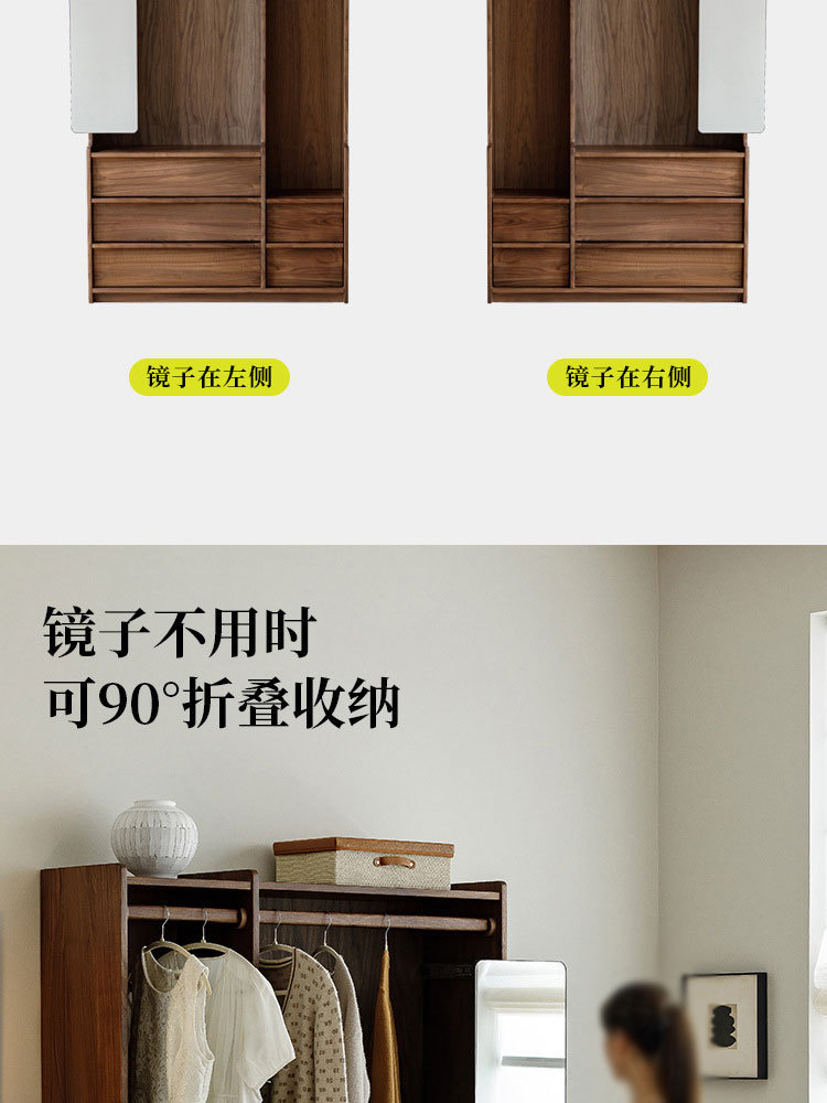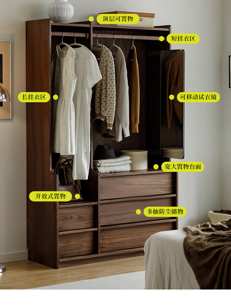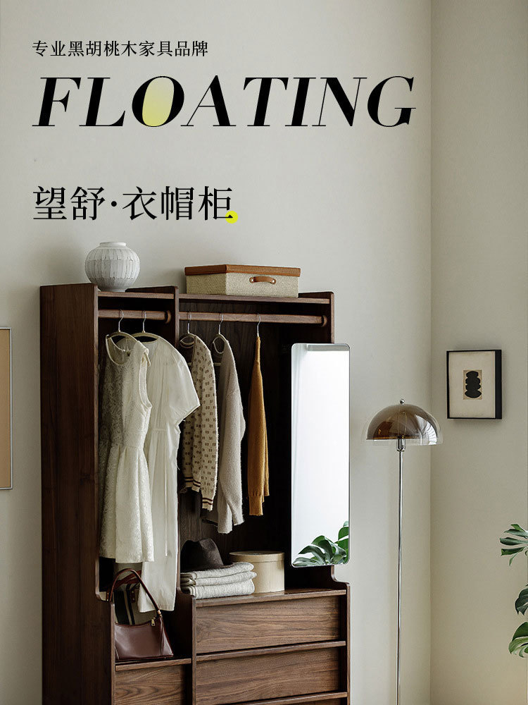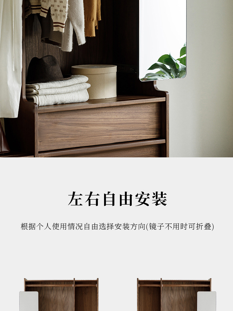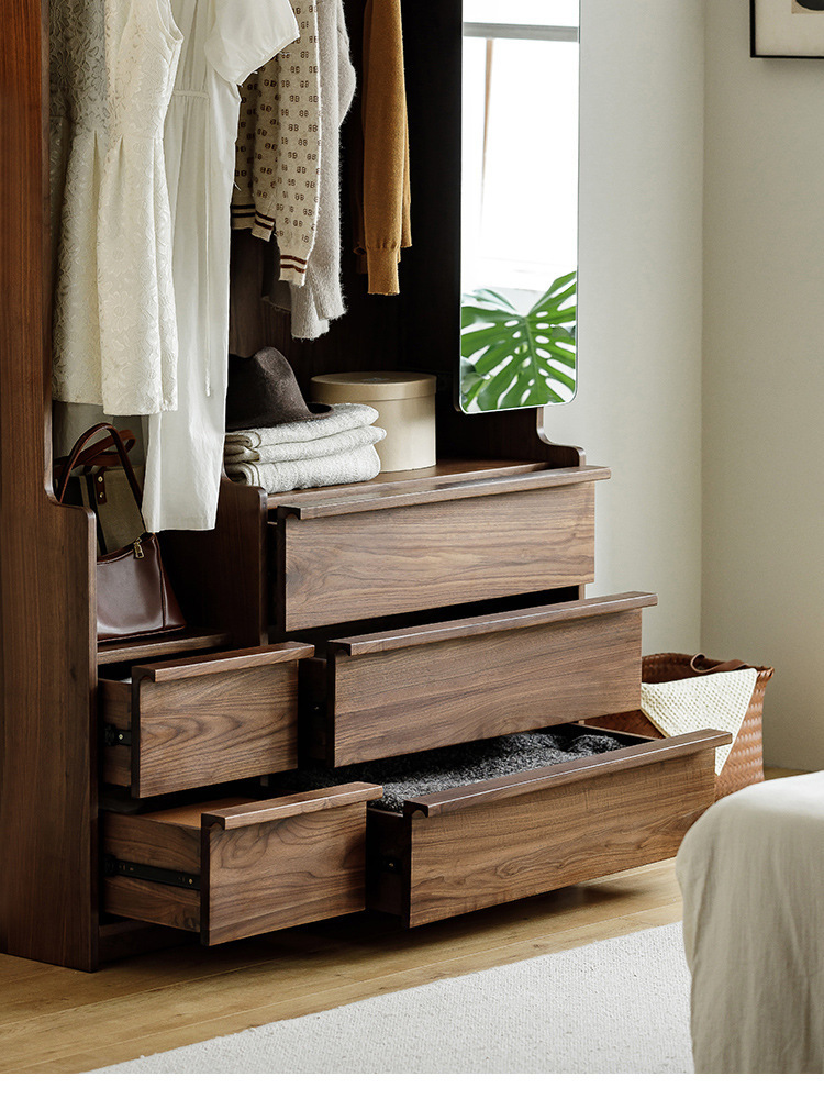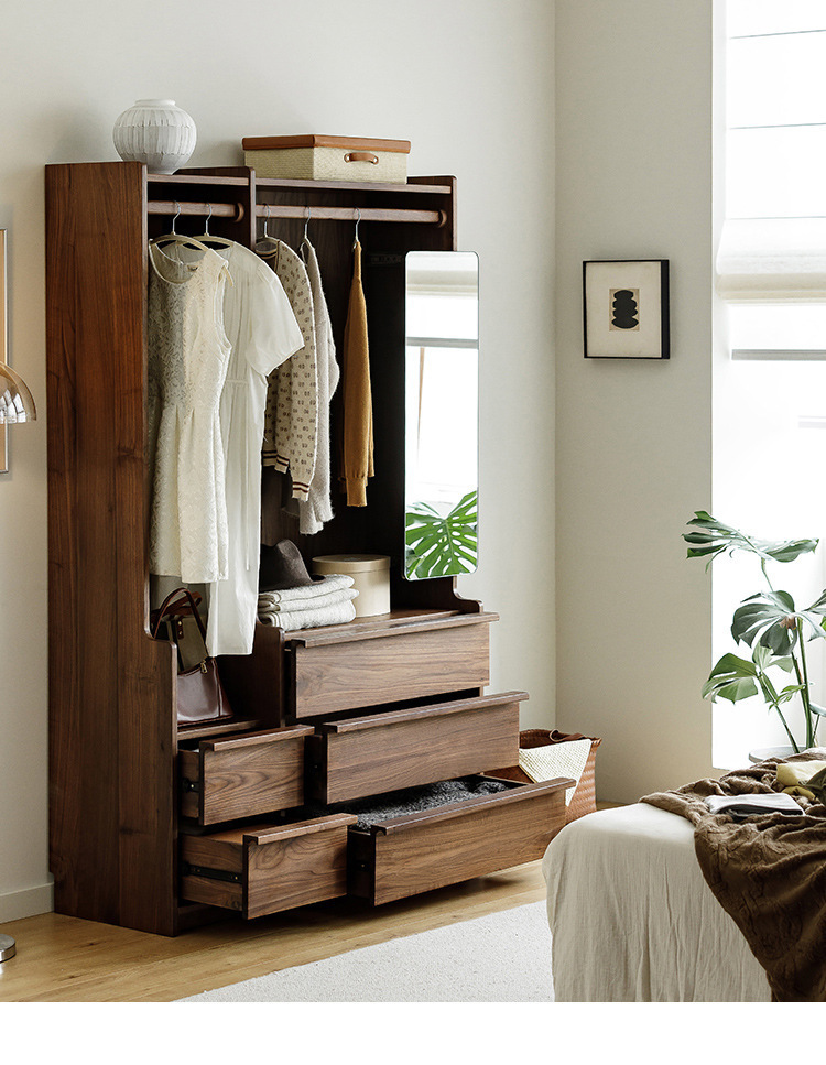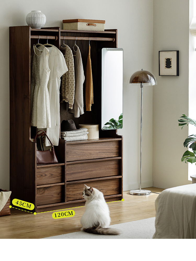 北米の黒い胡桃の木は服を着て鏡を着ます。